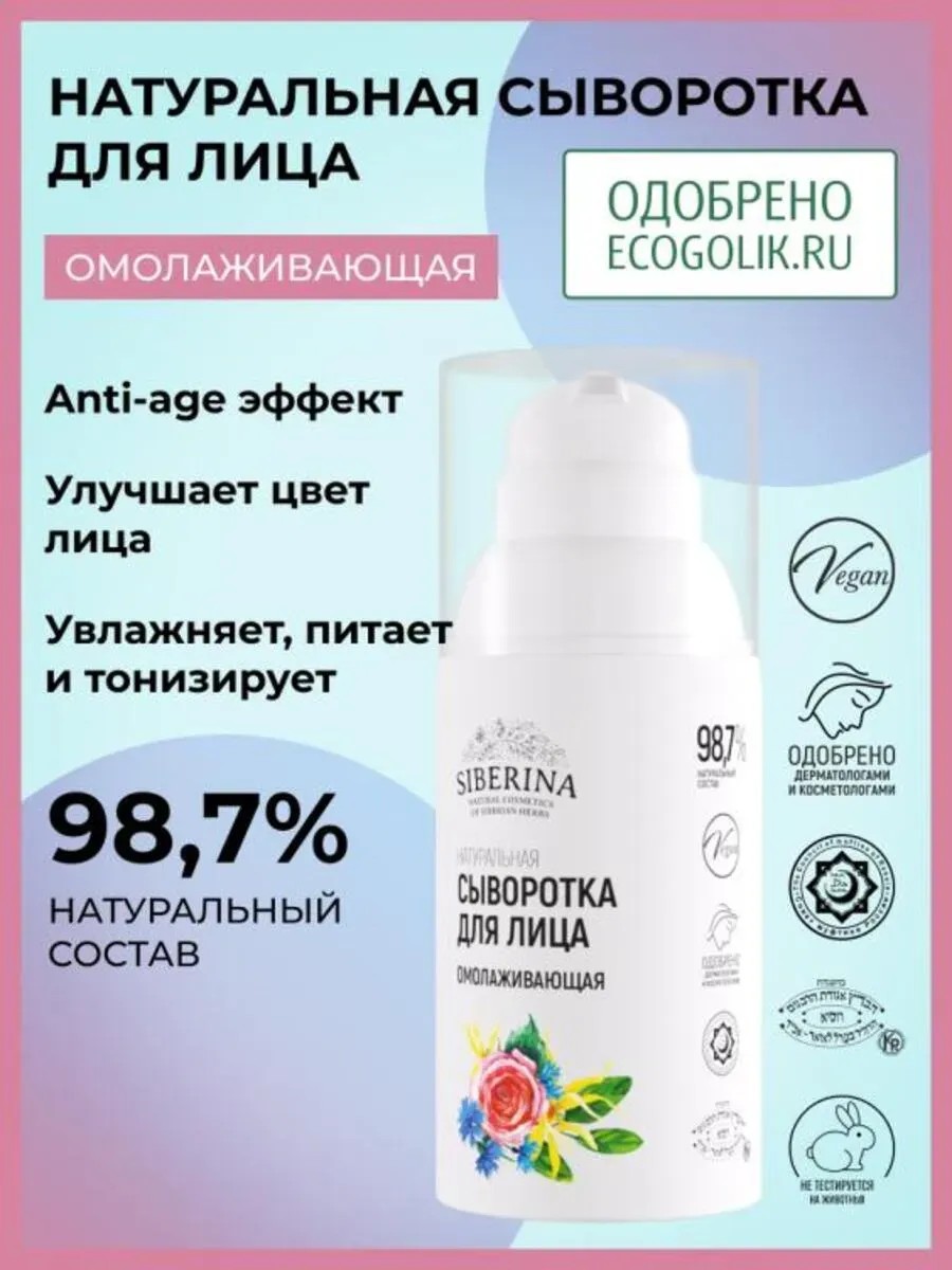 Натуральная сыворотка для лица "Омолаживающая", 30 мл.