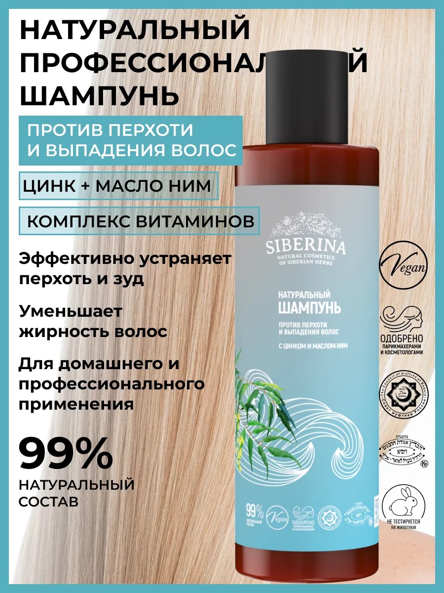 SIBERINA Натуральный бессульфатный шампунь от перхоти и выпадения