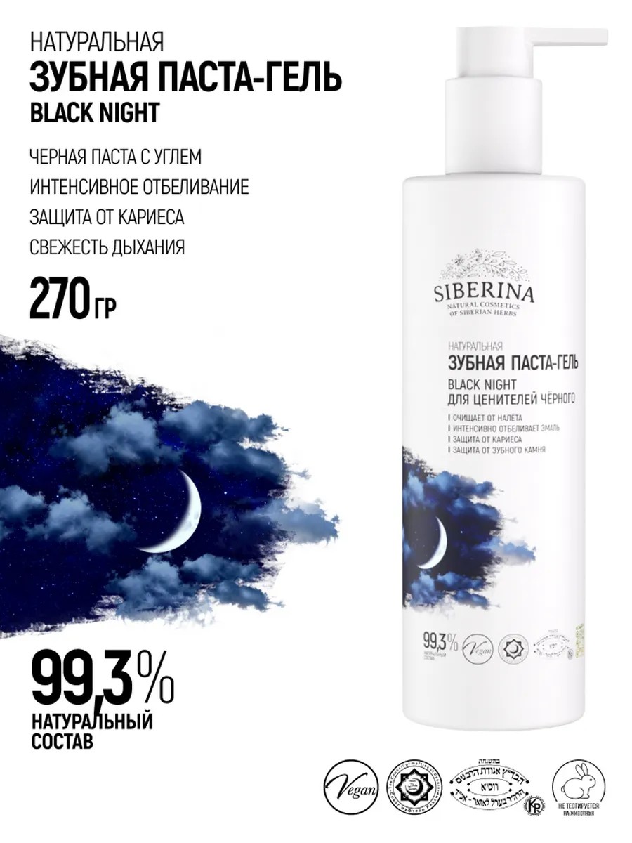 Натуральная зубная паста - гель "Black night" обеспечит комплексный уход за полостью рта. Она используется для защиты эмали от кариеса и зубного камня, а так же гарантирует свежее дыхание в течение дня. Профессиональное очищающее средство без фтора подойдет на каждый день для всей семьи: может использоваться как для взрослых, так и для подростковой гигиены, с 12 лет, а также беременных и мам, кормящих малышей. Рекомендуется для чувствительных зубов. Гелевая чистящая паста, благодаря эко составу, безопасна в случае проглатывания. Средство имеет флакон с дозатором, объем 270 гр, пасту удобно выдавливать.