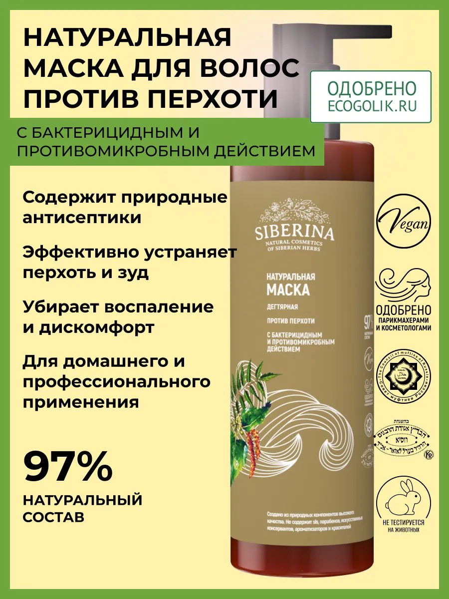 SIBERINA Натуральная маска для волос от перхоти дегтярная
