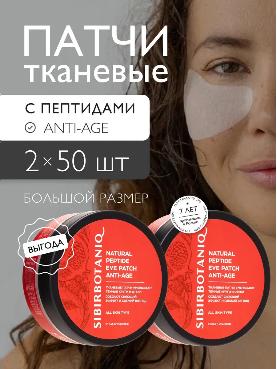 SIBIRBOTANIQ Патчи для глаз от отеков и мешков, антивозрастные, 2x50 шт