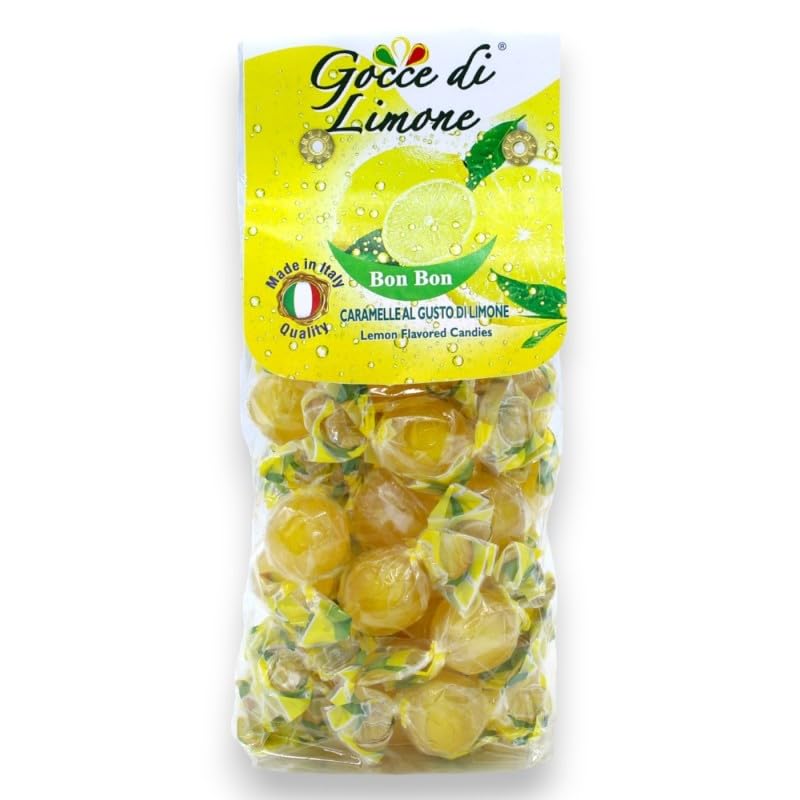 Bon Bon Caramelle with a lemon flavor. All the flavor of Sicily. INSTRUCTIONS FOR USE Supervise young children while eating these candies and ensure they chew them thoroughly.