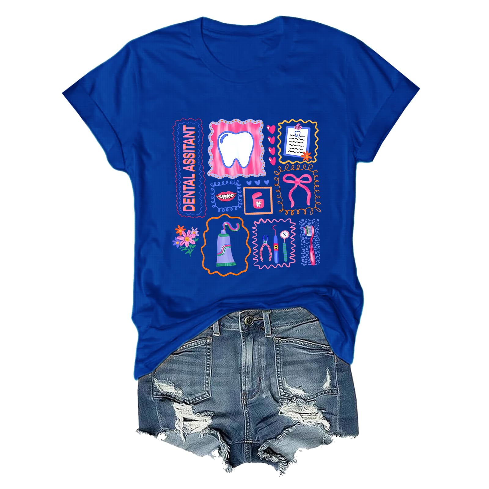 Sidovwt Dental Assistant Shirt Dental Hygienist Shirt Unisex Sapphire Blue