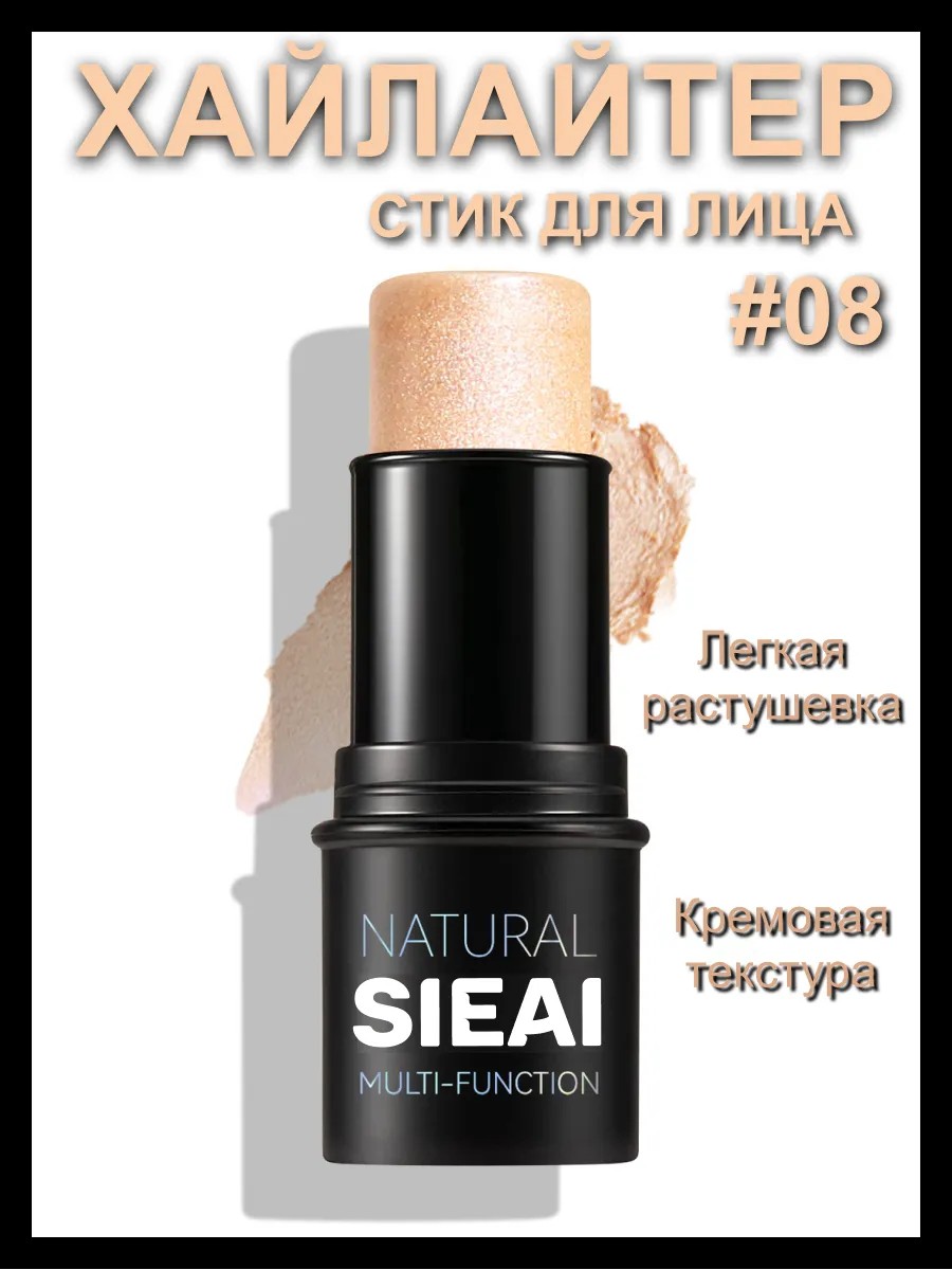 ЭКСКЛЮЗИВНО на Wildberries. НОВИНКА. Хайлайтер стик для лица и тела SIEAI Make Up Academy - удачное завершение любого образа. До 94% ингредиентов натурального происхождения. В коллекции 4 натуральных оттенка для всех цветотипов, так же в коллекции 12 цветов хайлайтера, румян и корректора. Хайлайтеры кремовые для лица освежают, скульптурируют лицо и уравновешивают макияж. Шелковистая, чрезвычайно мягкая и приятная текстура ложится тончайшей вуалью. Всего одного взмаха стиком достаточно, чтобы скрыть следы усталости, покорив сердца окружающих своим безупречным видом. Высокая пигментированность продукта - залог экономичного расхода. Мягкая насыщенная сияющими частицами текстура хайлайтера равномерно ложится на кожу, создавая нежный перелив. Интенсивность сияния можно варьировать, нанося более тонкий слой на кожу, либо наслаивая текстуру. Кремовый продукт отлично растушевывается, позволяя добиться отдохнувшего, здорового цвета лица и обладает хорошей стойкостью. Хайлайтер SIEAI - это идеальный помощник на все случаи жизни. Придаст сияние, блеск и бронзирование. Он сможет стать изысканным завершением любого образа: нейтрального дневного макияжа, яркого smoky eyes или классического со стрелками. В коллекцию входят 12 оттенков. С этой универсальной палеткой для лица вы сможете: 1. Расставить естественные акценты с помощью сияющего бронзера и хайлайтера можно добиться естественной тени, а легкое сияние придаст коже лоска; 2. Придать лицу свежести с помощью румян со светоотражающими частицами; 3. Трансформировать дневной макияж в вечерний, добавив еще больше сияния! Хайлайтер кремовый прекрасно наслаивается для более ошеломляющего эффекта; 4. Создать и сияющий макияж глаз - просто нанесите любой оттенок из палетки сухой кистью для теней. Хайлайтер имеет ШЕЛКОВИСТУЮ текстуру, легко РАСТУШЕВЫВАЕТСЯ и ложится на кожу ТОНКОЙ ВУАЛЬЮ.