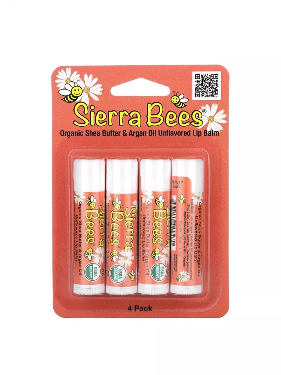 Sierra Bees, Органические бальзамы для губ, масло ши и аргановое масло, 4 штуки в упаковке весом 0,15 унции (4,25 г) каждая