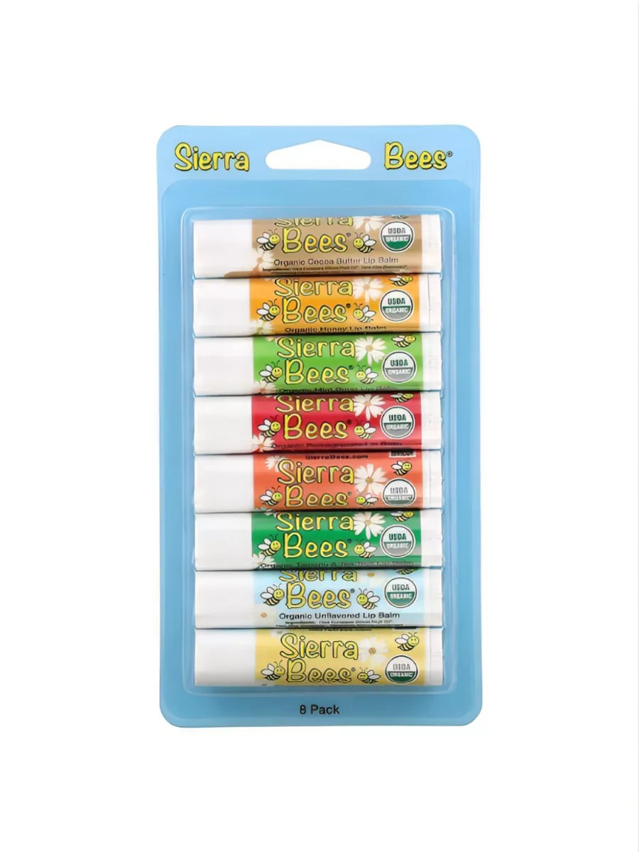 Органические бальзамы для губ Sierra Bees содержат экологически чистый пчелиный воск, оливковое масло, подсолнечное масло и витамин Е, не содержат ГМО и являются этичными.