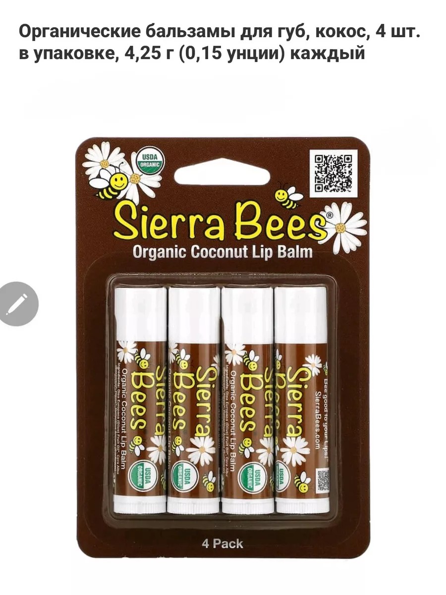 sierra bees Натуральные бальзамы для губ в наборе со вкусом кокоса