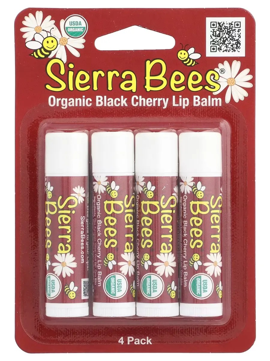 sierra bees Бальзам органические для губ, черная черешня , 4 шт.