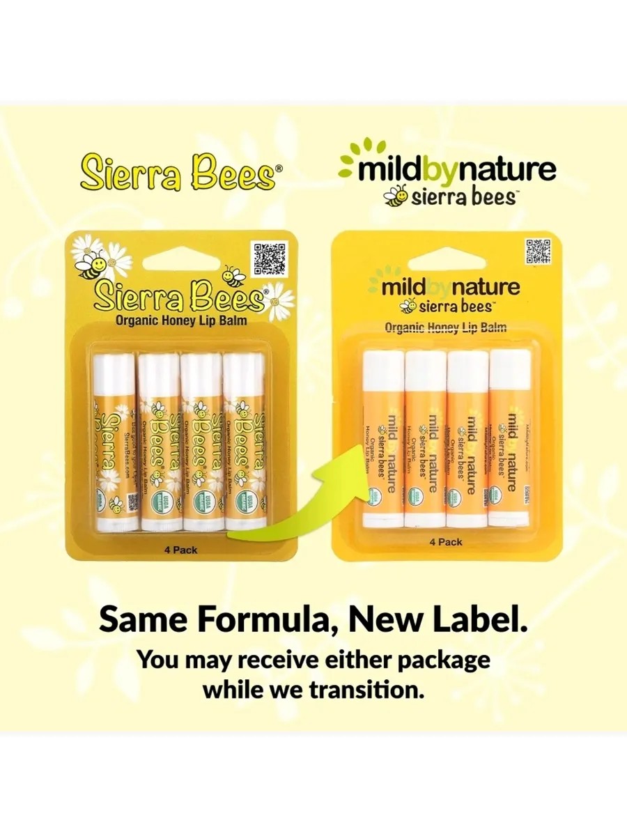 Organic Honey Lip Balm (4 x 4.25 grams) contains organic beeswax, olive oil, sunflower oil, fragrance, honey extract, and vitamin E, all sustainably produced. Contains no sulfates, preservatives, or artificial fragrances.