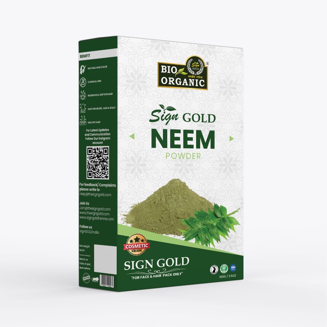 sign GOLD BIO ORGANIC Pure Neem Powder | Pure Wild-Crafted Neem Leaf Powder | Supplement for Skin and Hair | Azadirachta Indica (3.5 oz - 100grams - 0.2 lb)