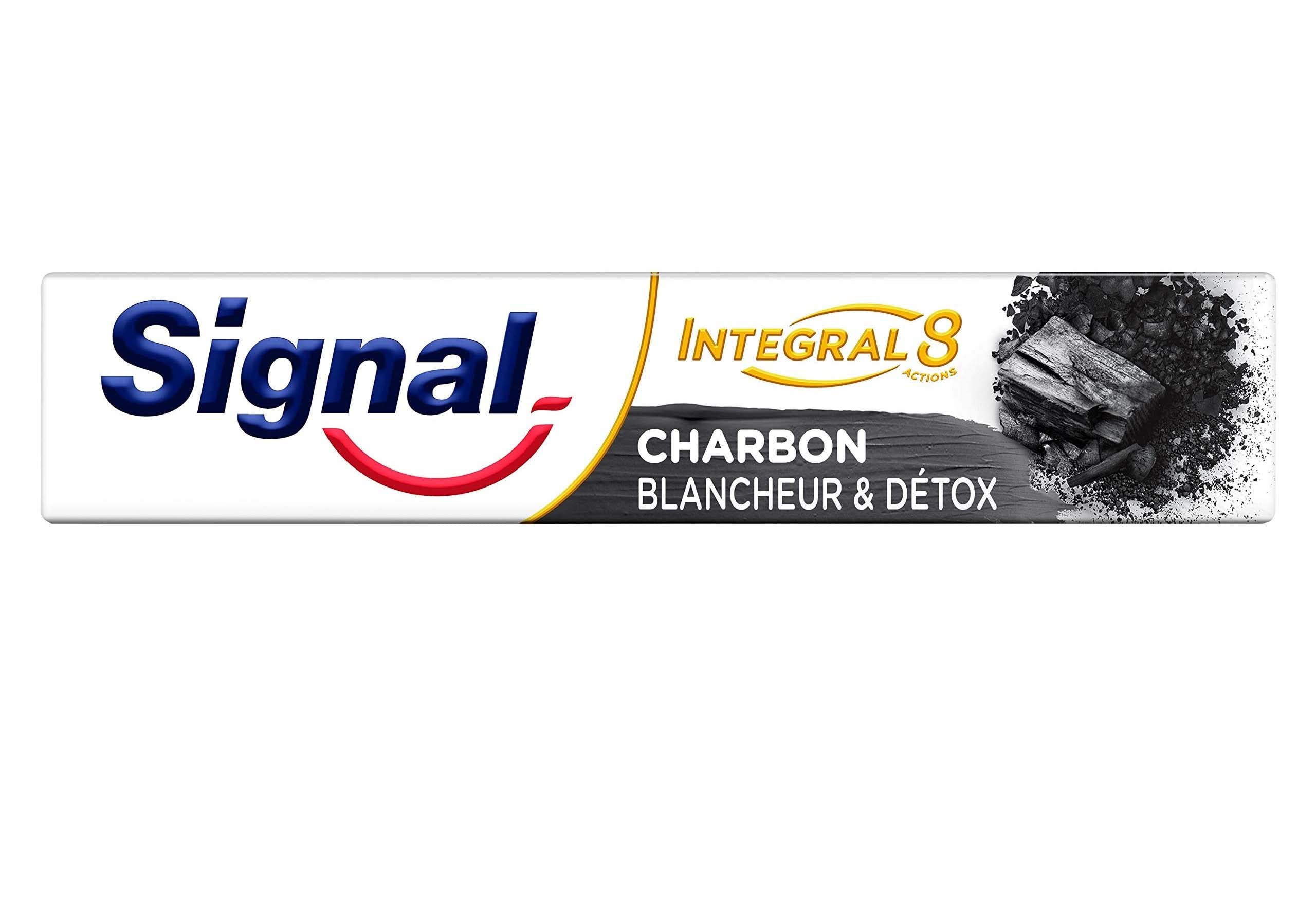 Gentle formula with Mineral Zinc, without triclosan Clinically proven formula for complete protection. Its gentle formula combines charcoal powder with mineral zinc, and provides effective antibacterial action. This Signal Whitening Detox toothpaste helps restore the natural whiteness of your teeth. A toothpaste that provides whiter teeth and a purified mouth this toothpaste is infused with charcoal powder.Formule douce au Zinc Minéral, sans triclosan Formule cliniquement prouvée pour une protection complète. Sa formule douce associe la poudre de charbon au zinc minéral, et apporte une action antibactérienne efficace. Ce dentifrice Signal Blancheur Detox ide à retrouver la blancheur naturelle de vos dents. Un dentifrice qui procure des dents plus blanches et une bouche purifiée ce dentifrice est infusé à la poudre de charbon.