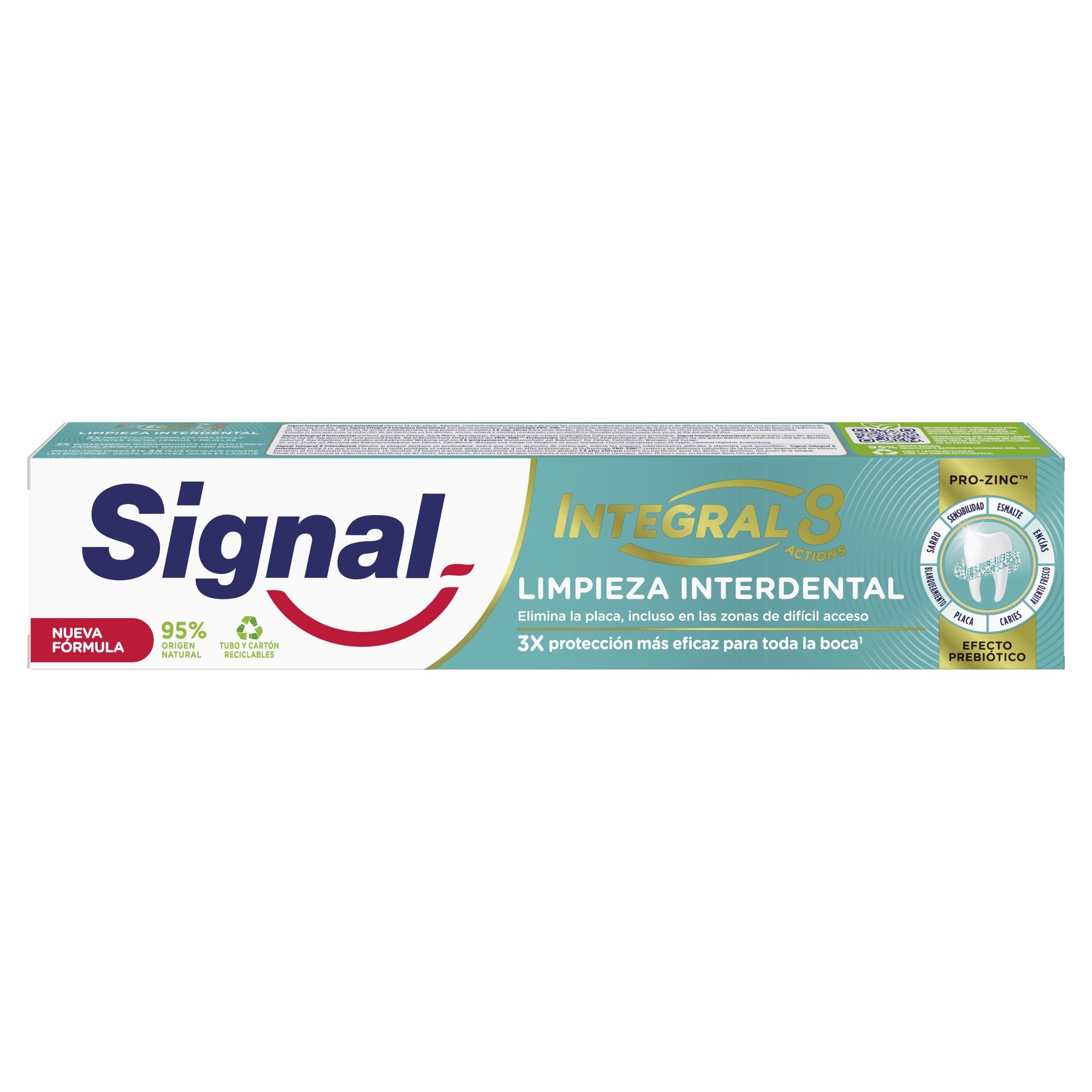 For optimized whitening action and a completely protected and healthy mouth day after day, choose Signal Integral 8 Whitening. With a prebiotic effect, its PRO-ZINC technology strengthens your mouth's natural defenses by increg good bacteria and reducing bad bacteria. Its formula is effective against stains and gentle on enamel. It also offers 24-hour antibacterial action and complete, 3x effective protection: healthy teeth, gums, cheeks, and tongue. Created with 95 natural ingredients, it is suitable for the whole family. This Integral 8 toothpaste offers 8 benefits: cavity protection, gum protection, strengthened enamel, whitening action, fresh breath, plaque control, gingivitis relief, and sensitivity relief. Furthermore, the tube is fully recyclable. For good oral hygiene for the whole family, follow these simple steps: (1) In the morning, brush with Signal toothpaste and toothbrush, and rinse with Signal mouthwash. (2) During the day, freshen your breath with Signal mouthwash. (3) At night, brush with Signal toothpaste and toothbrush, and rinse with Signal mouthwash. Remember to change your toothbrush every 3 months and see your dentist regularly. In vivo study measuring the reduction of bacteria on teeth, gums, cheeks, and tongue compared to conventional D6 fluoride toothpaste, after 28 days of brushing twice a day. Choose Signal Integral 8 toothpaste for complete protection of your entire mouth: teeth, gums, tongue, and cheeks, to maintain good oral health day after day. With a prebiotic effect, its PRO-ZINC technology strengthens your mouth's natural defenses by increg good bacteria and reducing bad bacteria. With a prebiotic effect, its PRO-ZINC technology strengthens your mouth's natural defenses by increg good bacteria and reducing bad bacteria. Its formula is effective against stains and gentle on enamel. It also offers 24-hour antibacterial action and 3x effective complete protection: healthy teeth, gums, cheeks, and tongue. INSTRUCTIONS FOR USE For effective use, apply a sufficient amount of toothpaste to your toothbrush. Brush your teeth using circular motions, making sure to thoroughly clean all tooth surfaces, including interdental areas. Brush your teeth for at least two minutes, then rinse your mouth thoroughly. Use this toothpaste twice a day for optimal oral hygiene. SAFETY WARNING For external use only. Do not swallow. Keep out of reach of children. Discontinue use and consult a dentist if irritation occurs. See moreSignal Integral 8 Interdental Cleaning toothpaste is made with 96 natural ingredients and is suitable for the whole family. It offers 8 benefits: cavity protection, gum protection, enamel strengthening, whitening action, fresh breath, plaque control, gingivitis relief, and sensitivity relief. Its formula provides 24-hour antibacterial action and comprehensive, 3-fold effective protection for healthy teeth, gums, tongue, and cheeks. With a prebiotic effect, the PRO-ZINC technology in this toothpaste strengthens your mouth's natural defenses by increg good bacteria and reducing bad bacteria. For a fully protected and healthy mouth day after day, choose Signal Integral 8 Interdental Cleaning toothpaste.Signal Dentifrice Integral 8 Nettoyage Interdentaire avec ingrédients d'origine naturelle 75 ml x1DESCRIPTION DU PRODUIT DESCRIPTION DU PRODUIT Pour une action blanchissante optimisée et une bouche complètement protégée et saine jour après jour, choisissez Signal Integral 8 Blanchissant. Avec un effet prébiotique, sa technologie PRO-ZINC renforce les défenses naturelles de votre bouche en augmentant les bonnes bactéries et en réduisant les mauvaises bactéries. Sa formule est efficace contre les taches et douce avec l'émail. Il offre également 24 heures d'action antibactérienne et une protection complète 3 fois efficace : dents, gencives, joues et langue saines. Créé avec 95 d'ingrédients naturels, il convient à toute la famille. Ce dentifrice Integral 8 offre 8 actions : protection anti-caries, protection des gencives, émail renforcé, action blanchissante, haleine fraîche, anti-plaque, anti-gingivite et anti-sensibilité. En outre, le tube est entièrement recyclable. Pour une bonne hygiène bucco-dentaire pour toute la famille, suivez ces étapes simples : (1) Le matin, brossez-vous avec le dentifrice et la brosse à dents Signal, et rincez-vous avec le rince-bouche Signal. (2) Pendant la journée, rafraîchissez votre haleine avec le rince-bouche Signal. (3) La nuit, brossez vos dents avec le dentifrice et la brosse à dents Signal, et rincez-vous avec le rince-bouche Signal. N'oubliez pas de changer votre brosse à dents tous les 3 mois et de consulter régulièrement votre dentiste. Étude in vivo qui mesure la réduction des bactéries sur les dents, les gencives, les joues et la langue par rapport au dentifrice fluoré D6 conventionnel, après 28 jours de brossage deux fois par jour. Choisissez le dentifrice Signal Integral 8, pour une protection complète de toute la bouche : dents, gencives, langue et joues, pour maintenir une bonne santé bucco-dentaire jour après jour. Avec un effet prébiotique, sa technologie PRO-ZINC renforce les défenses naturelles de votre bouche en augmentant les bonnes bactéries et en réduisant les mauvaises bactéries. Avec un effet prébiotique, sa technologie PRO-ZINC renforce les défenses naturelles de votre bouche en augmentant les bonnes bactéries et en réduisant les mauvaises bactéries. Sa formule est efficace contre les taches et douce avec l'émail. Il offre également une action antibactérienne de 24 heures et une protection complète 3 fois efficace : dents, gencives, joues et langue saines. MODE D'EMPLOI Pour une utilisation efficace, appliquez une quantité suffisante de dentifrice sur votre brosse à dents. Brossez-vous les dents en effectuant des mouvements circulaires, en veillant à bien nettoyer toutes les surfaces dentaires, y compris les zones interdentaires. Brossez-vous les