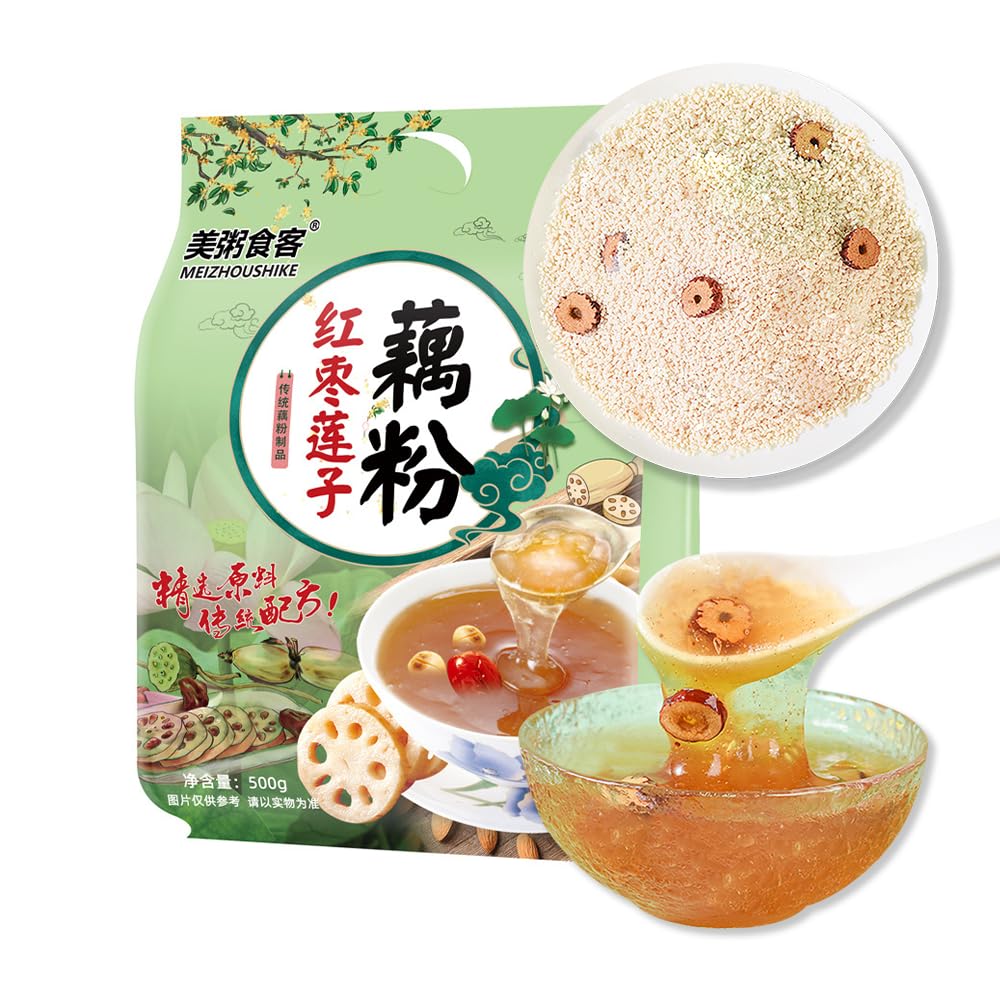 The product is a combination of jujube slices and lotus root powder, which looks good and is made of genuine materials. After rapid and simple brewing, the lotus root has a strong aroma, a refreshing and smooth taste, a sweet taste, and rich nutrition. It can be eaten by both adults and children. Due to its simple brewing method and being ready to eat in just a few minutes, it is very suitable for office workers, student enthusiasts, and those in a hurry. Lotus root powder is very nutritious, so you don't have to worry about not eating well. It is very suitable for working overtime to replenish energy, fitness experts, and adding vitality anytime, anywhere. Large bag packaging, sufficient serving, built-in independent small packaging, clean and hygienic, convenient to carry, and enjoy delicious food anytime and anywhere. One bag at a time is just right, it's great to give to family, friends, and colleagues.?Storage Conditions?: Please store in a cool and dry place, sealed, with a shelf life of 12 months (360 days). ?Product Ingredients?: Lotus root powder = 90% (lotus root powder, edible glucose, white sugar, red date powder = 3%, lotus root powder = 3%), red date crushed = 10%. ?Edible method?: Blanch with boiling water. Step 1: Take an appropriate amount of lotus root powder and pour it into a cup; Step 2: First, add a small amount of warm water to dissolve the lotus root powder and stir evenly; Step 3: Pour in freshly boiled water at once, stir and add boiling water (remember to heat it up) until it becomes a paste. (Note: The first time is to add warm water, and the second time is to heat water. Water: lotus root powder=1:5 is the best.). ?Suitable for?: Due to its simple brewing method and ability to be ready to eat in a few minutes, it is very suitable for office workers, student enthusiasts, and those in a hurry. Lotus root powder is very nutritious, so you don't have to worry about not eating well. It is very suitable for working overtime to replenish energy, fitness experts, and adding vitality anytime, anywhere. ?Product Features?: The product is a combination of red date slices and lotus root powder, which looks good and is made of genuine materials. After rapid and simple brewing, the lotus root has a strong aroma, a refreshing and smooth taste, a sweet taste, and rich nutrition. It can be eaten by both adults and children.