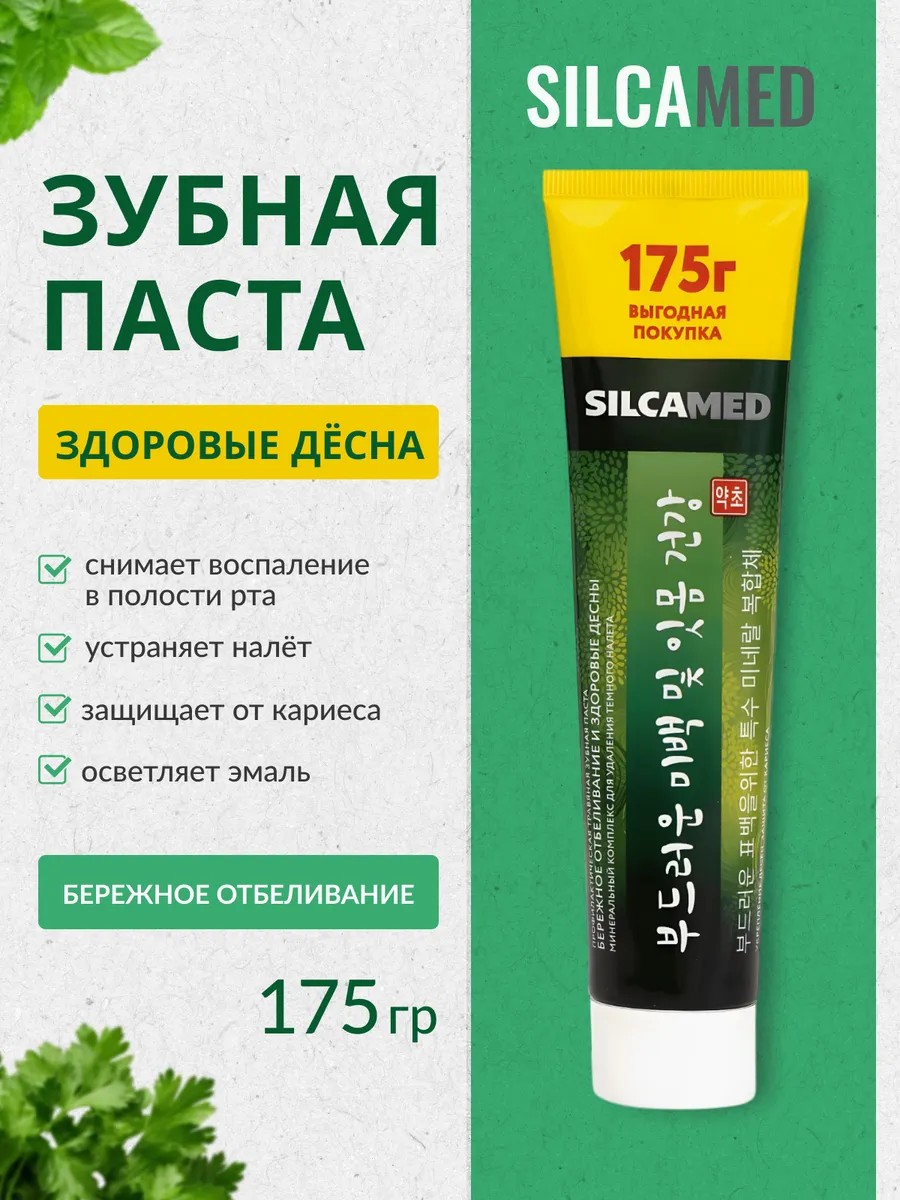 | Комплектация | Профилактическая травяная зубная паста Silcamed "Бережное отбеливание и здоровые десны", 175 гр |