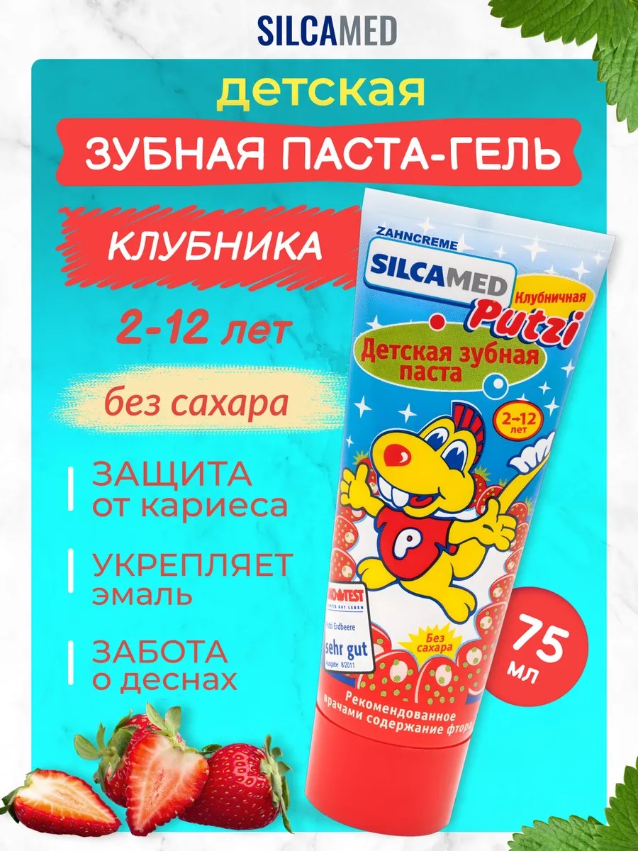 КомплектацияДетская зубная паста SILCAMED Putzi Клубничная, 75 г