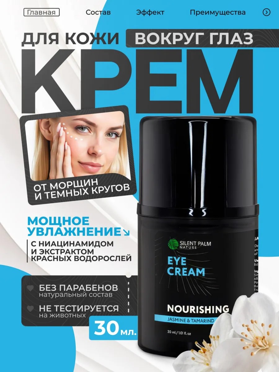 Представьте себе, что у вас есть невероятная возможность вернуть своей коже вокруг глаз молодость и свежесть. Натуральный крем от Silent Palm Nature с жасмином и тамариндом ваш надежный союзник в борьбе с признаками старения и негативными воздействиями окружающей среды. Благодаря уникальной формуле, основанной на тропических эко экстрактах, он не только повышает тонус эпидермиса, но и эффективно укрепляет стенки капилляров, улучшает кровообращение и реконструирует коллагеновые связи. Ежедневный уход становится приятным ритуалом с увлажняющим кремом, лишенным отдушек, сульфатов, силикона и парабенов, настоящим качественным beauty продуктом. Антивозрастной крем для век с ниацинамидом успешно справляется с возрастными изменениями, устраняет отеки, морщины и синяки под глазами. Восстанавливающий крем это защита от появления мимических морщин, темных кругов и отеков под глазами. Ключевые ингредиенты, жасмин и тамаринд, придают крему уникальные свойства. Тамаринд, богатый органическими кислотами, нежно отбеливает и увлажняет кожу, связывая и удерживая молекулы воды. Жасмин, в свою очередь, освежает, разглаживает и делает кожу упругой, благодаря своему эфирному маслу. И самое прекрасное крем не только эффективен, но и приятен в использовании. Его воздушная консистенция и нежный аромат создают неповторимый опыт ухода. Легкие, массирующие движения при нанесении обеспечивают вам приятные моменты ухода за собой. И не забывайте – ваша кожа заслуживает только лучшего. Тайская косметика высшего качества для бережного ухода ждет вас. Попробуйте, и ваш взгляд будет сверкать свежестью и уверенностью!