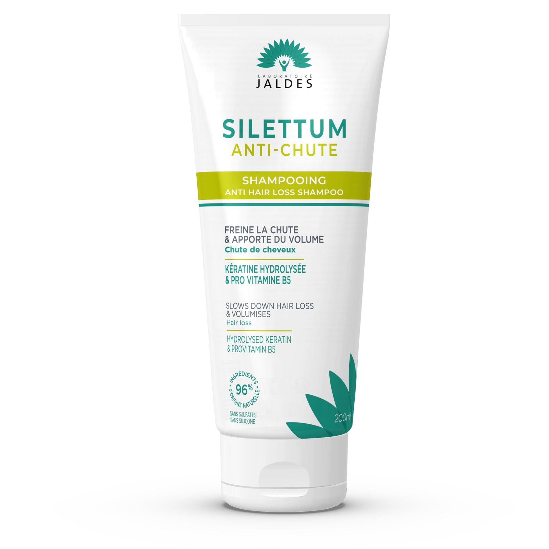 SILETTUM anti-hair loss shampoo respects the scalp with gentle cleansing thanks to a formula combining hydrolyzed keratin with provitamin B5. Revitalized, hair is stronger and denser, for regained volume. The active ingredients of SILETTUM anti-hair loss shampoo and their benefits - Hydrolyzed keratin restructures the hair fiber. - Provitamin B5 acts visibly on hair loss. A complete protocol - To increase the effectiveness on hair loss, consider combining SILETTUM Expert anti-hair loss for 3 months and or SILETTUM expert anti-hair loss treatment serum, for internal and external action. Without sulfates and silicone, with 96 ingredients of natural origin. Effectiveness proven by our users - 86 of users noted visible anti-hair loss effectiveness - 86 of users noted stronger hair Clinical study against placebo of the anti-hair loss effectiveness of Cynatine Top. satisfaction. Usage test carried out on 22 subjects for 28 days (3 uses per week). - Apply to wet hair, lather, leave for a few minutes then rinse. - Avoid contact with eyes. - In case of contact, rinse thoroughly with clean water. - Keep out of reach of children. - External use, do not swallow. - Store away from heat. INGREDIENTS Aqua, Disodium laureth sulfosuccinate, Sodium lauryl sulfoacetate, Cocamidopropyl betaine, Disodium cocoamphodiacetate, Hydrolyzed keratin (cynatine top), Panthenol, Polyquaternium-7, Parfum, PEG-90 glyceryl isostearate, PEG-6 caprylic capric glycerides, Laureth-2, Sodium benzoate, Potassium sorbate, Citric acid. 96 of the ingredients are of natural origin. DIRECTIONS FOR USE Apply to wet hair, lather, leave for a few minutes then rinse. SAFETY WARNING Avoid contact with eyes. In case of contact, rinse with plenty of clean water. Keep out of reach of children. External use, do not swallow. Store away from heat. A COMPLETE PROTOCOL: For enhanced effectiveness, combine with our SILETTUM Expert anti-hair loss tablets and SILETTUM expert serum. NATURAL INGREDIENTS: It is formulated without sulfates and silicones, with 96 ingredients of natural origin. PROVEN EFFECTIVENESS: 86 of users noted visible anti-hair loss effectiveness and stronger hair. RESPECT FOR THE SCALP: SILETTUM anti-hair loss shampoo offers gentle cleansing thanks to a formula combining hydrolyzed keratin and provitamin B5. ANTI-HAIR LOSS: SILETTUM anti-hair loss shampoo will visibly improve the density of your hair thanks to a combination of active ingredients with proven effectiveness. SILETTUM shampooing anti-chute respecte le cuir chevelu avec un nettoyage en douceur grâce à une formule associant de la kératine hydrolysée à de la provitamine B5. Revitalisés, les cheveux sont plus forts et plus denses, pour un volume retrouvé. Les actifs de SILETTUM shampooing anti-chute et leurs bienfaits - La kératine hydrolysée restructure la fibre capillaire. - La provitamine B5 agit de façon visible sur la chute de cheveux. Un protocole complet - Pour renforcer l'efficacité sur la chute de cheveux, pensez à associer SILETTUM Expert anti-chute pendant 3 mois et ou SILETTUM expert sérum traitement anti-chute, pour une action interne et externe. Sans sulfates et sans silicone, avec 96 d'ingrédients d'origine naturelle. Une efficacité prouvée par nos utilisateurs - 86 des utilisateurs ont constaté une efficacité anti-chute visible - 86 des utilisateurs ont constaté des cheveux plus forts Étude clinique contre placebo de l'efficacité anti-chute du Cynatine Top. de satisfaction. Test d'usage réalisé sur 22 sujets pendant 28 jours (3 utilisations par semaine). - Appliquer sur cheveux mouillés, faire mousser, laisser poser quelques minutes puis rincer. - Éviter tout contact avec les yeux. - En cas de contact, rincer abondamment à l'eau claire. - Conserver hors de portée des enfants. - Usage externe, ne pas avaler. - Conserver à l'abri de la chaleur. INGRÉDIENTS Aqua, Disodium laureth sulfosuccinate, Sodium lauryl sulfoacetate, Cocamidopropyl betaine, Disodium cocoamphodiacetate, Hydrolyzed keratin (cynatine top), Panthenol, Polyquaternium-7, Parfum, PEG-90 glyceryl isostearate, PEG-6 caprylic capric glycerides, Laureth-2, Sodium benzoate, Potassium sorbate, Citric acid. 96 des ingrédients sont d'origine naturelle. MODE D'EMPLOI Appliquer sur cheveux mouillés, faire mousser, laisser poser quelques minutes puis rincer. AVERTISSEMENT DE SÛRETÉ Éviter tout contact avec les yeux. En cas de contact, rincer abondamment à l'eau claire. Conserver hors de portée des enfants. Usage externe, ne pas avaler. Conserver à l'abri de la chaleur. UN PROTOCOLE COMPLET : Pour une efficacité renforcée, associez à nos comprimés SILETTUM Expert anti-chute et au sérum SILETTUM expert. INGRÉDIENTS NATURELS : Il est formulé sans sulfates et sans silicone, avec 96 d'ingrédients d'origine naturelle. EFFICACITÉ PROUVÉE : 86 des utilisateurs ont constaté une efficacité anti-chute visible et des cheveux plus forts. RESPECT DU CUIR CHEVELU : SILETTUM shampooing anti-chute offre un nettoyage en douceur grâce à une formule associant de la kératine hydrolysée et de la provitamine B5. ANTI-CHUTE : Le shampooing anti-chute SILETTUM va agir de façon visible sur la densité de vos cheveux grâce à une combinaison d'actifs à l'efficacité prouvée.