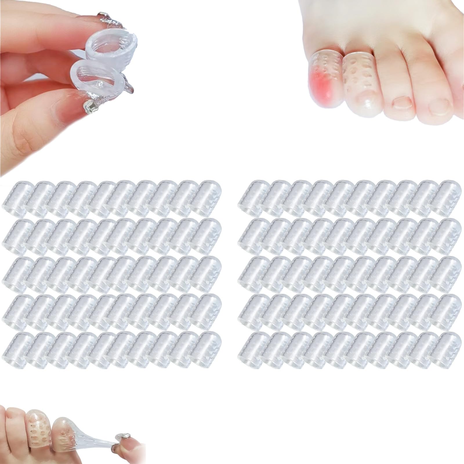 2024 Upgraded Silicone Anti-Friction Toe Protector Feature: Multi-functional Design High Quality Materials Space-saving Design Wide Range of Applications Easy to Clean and Use Specification: Color: Transparent Material: Silicone Size: 0.79 x 0.39 x 0.08 inches Weight: 5g Product Included: 10/20/30/50/100 pcs Silicone Anti-Friction Toe Protector If you have any problems, please contact us, we will try our best to help you,thank you!
