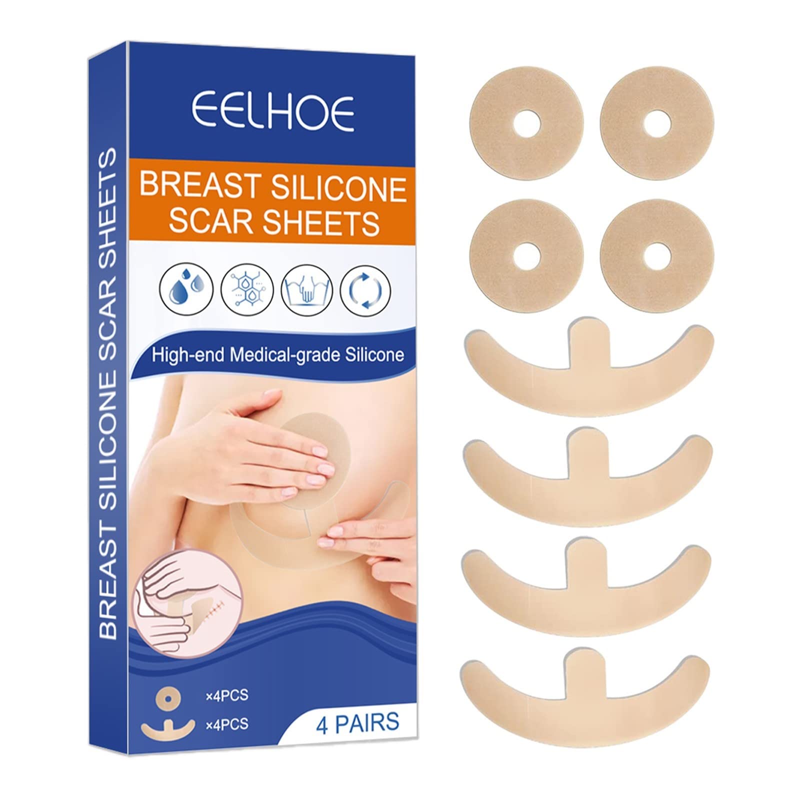Silicone Scar Sheets Silicone Scar Sheets For Breast 8 Pack Breast Reduction After For Scar Removal Sheets 4 Areola Soft Strips 4 Sheets Face Roller Skin Care