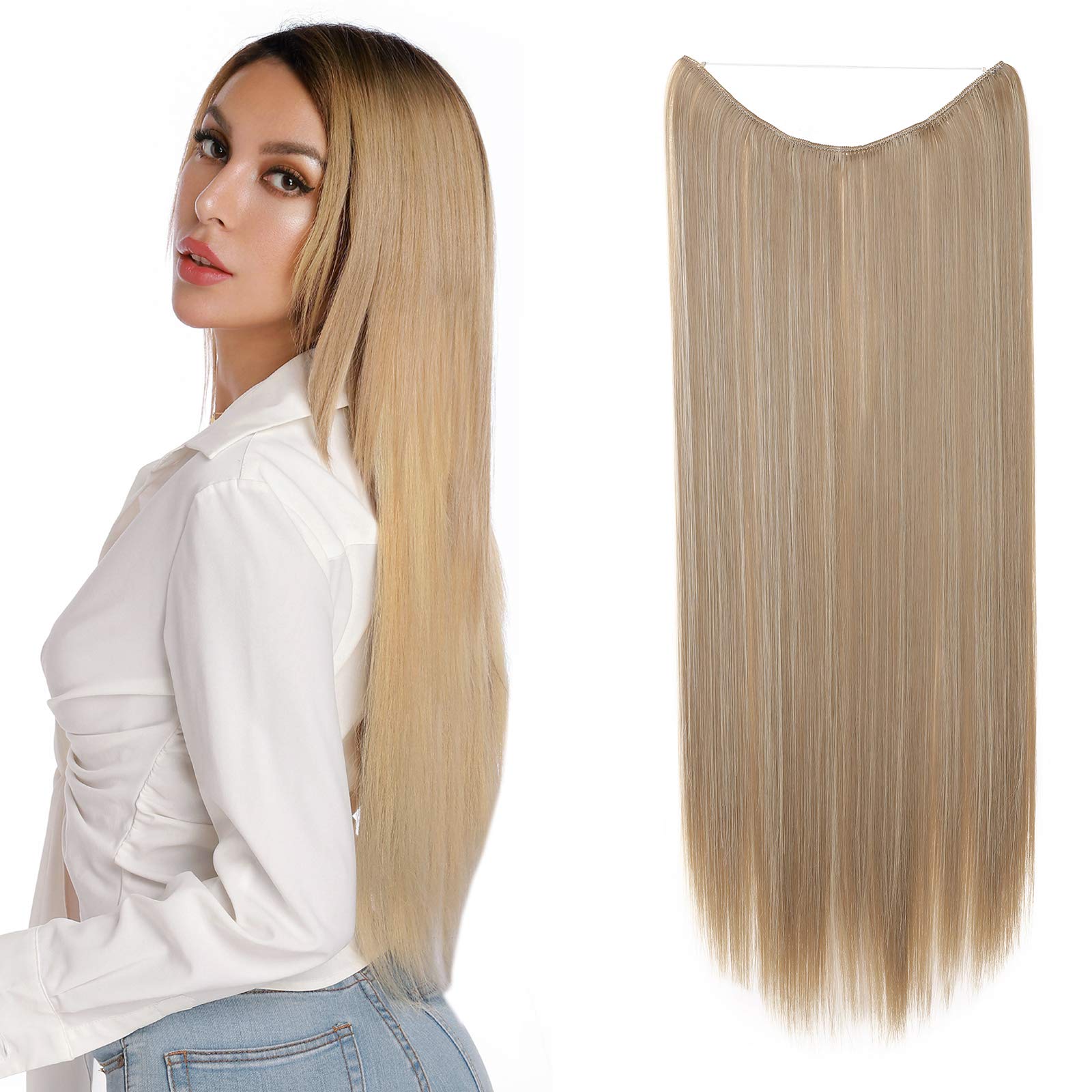 Silk-co Haarverlängerung mit Gummiband, Glatte Extensions mit unsichtbare Schnur, Synthetisch Haarteil wie Echthaar, Haarverdichtung Haar Extensions für Frauen, Blond, 60cm 60 cm Blond