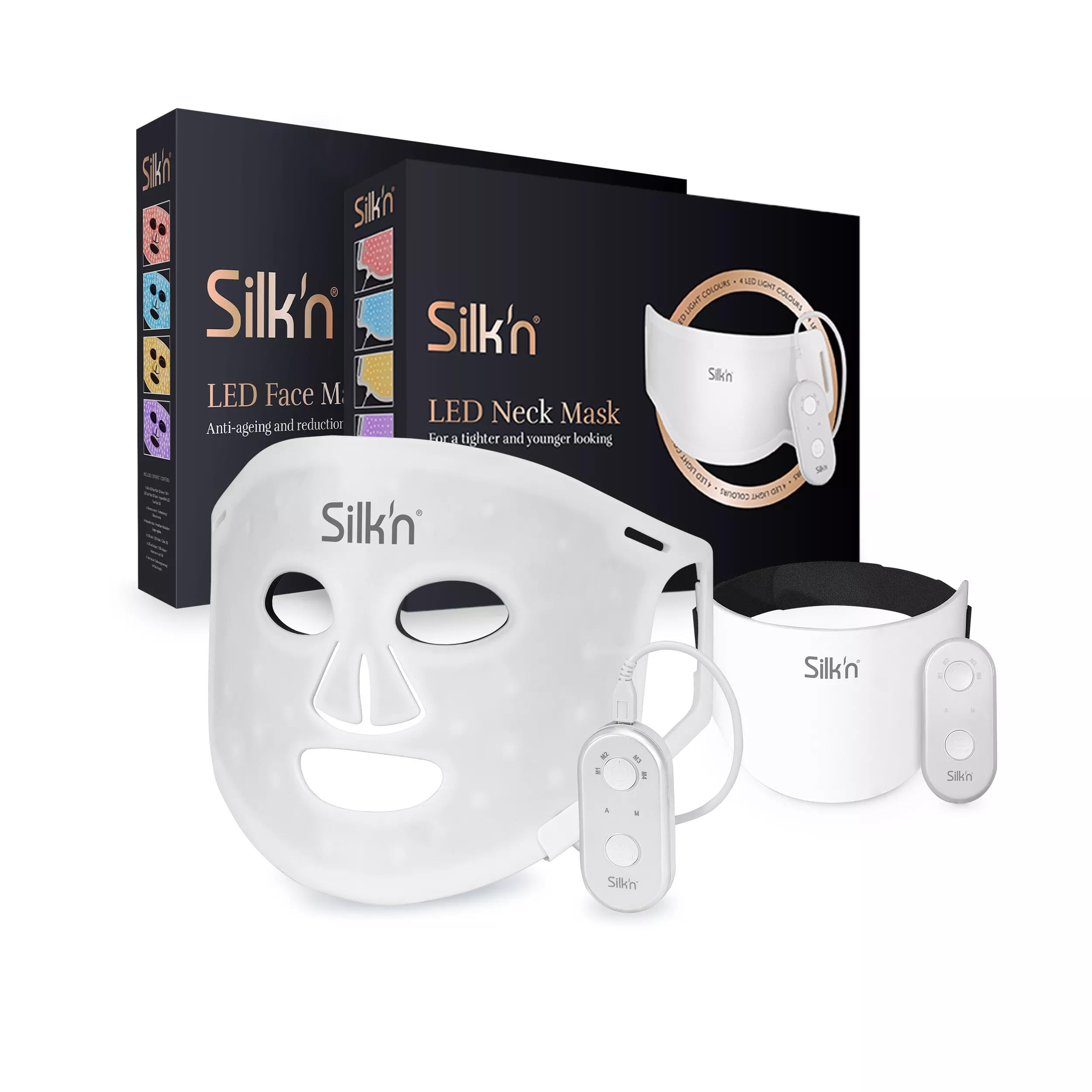 Silk'n LED Face & Neck Mask Set | 2 LED Light Masks with Red Light for Collagen Anti-Wrinkle & Anti-Aging | Revitalizing Effect | Wireless