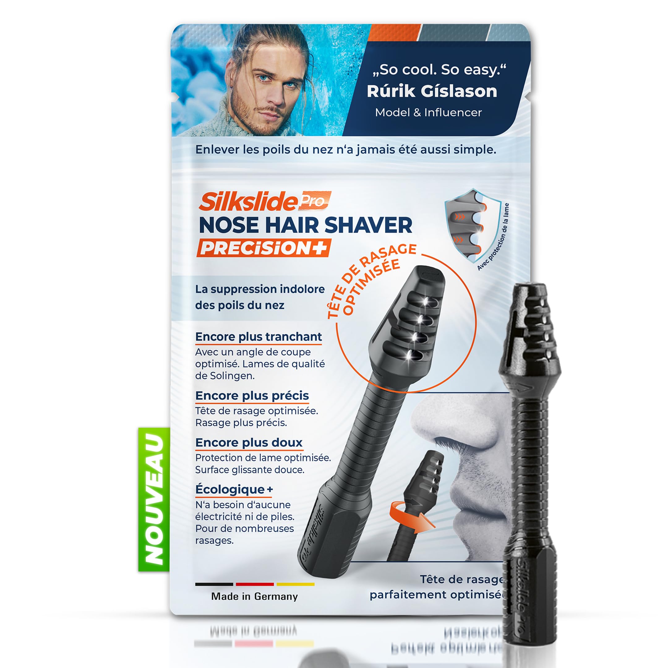 NETTOYAGE FACILE - Après utilisation, cette tondeuse mécanique se nettoie sans effort à l'eau tiède, et peut ensuite être réutilisée à tout moment. SÉCURITÉ, LONGÉVITÉ ET FIABILITÉ - Grâce son protège-lame innovant, le rasoir élimine les poils sans blesser votre nez. Avec un bon entretien, votre rasoir nasal dure au moins 2 ans. PRÉCISION ET PERFECTION - Le rasoir nasal SilkslidePro Precision est doté de deux lames haute précision fabriquées à Solingen, pour une élimination douce et précise de chaque poil du nez. SANS ÉLECTRICITÉ - L'utilisation de cette tondeuse pour narines NE requiert NI pile, NI batterie NI câble de chargement USB C. Elle est donc toujours prête à l'emploi, à tout moment. LA NOUVEAUTÉ - La tête de rasage du SilksliderPro Precision a été améliorée. Des performances nettement et sensiblement accrues avec la Precision par rapport à la SilkslidePro 2.0.