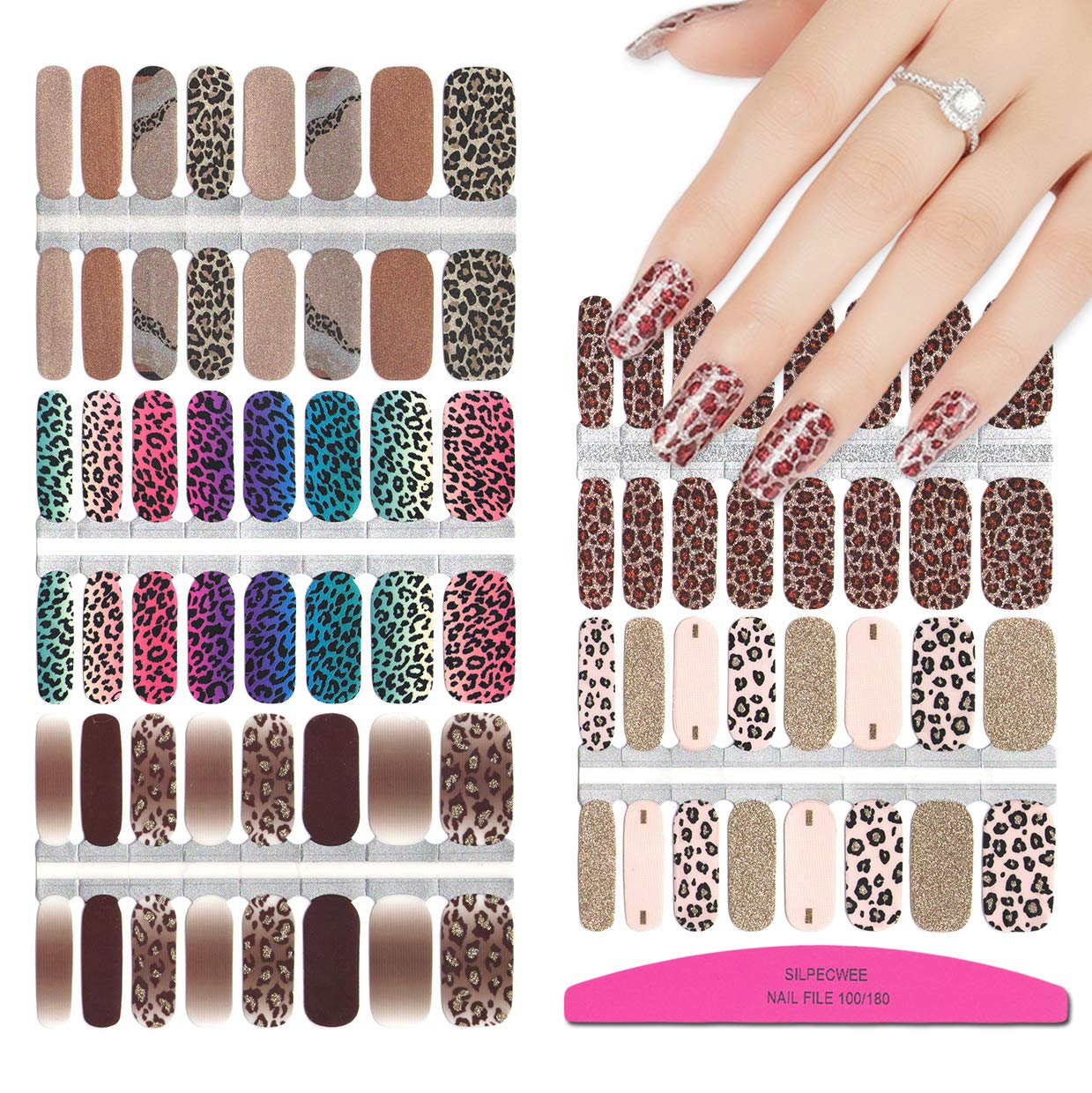 SILPECWEE 5 Sheets Cheetah Print Adhesive Nail Polish Stickers Decals with 1Pc Nail File Full Wraps Nail Strips Manicure Kit No2