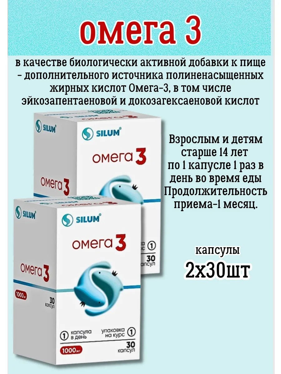 Silum Омега 3 взрослый 1000 мг капсулы 2 уп по 30 шт