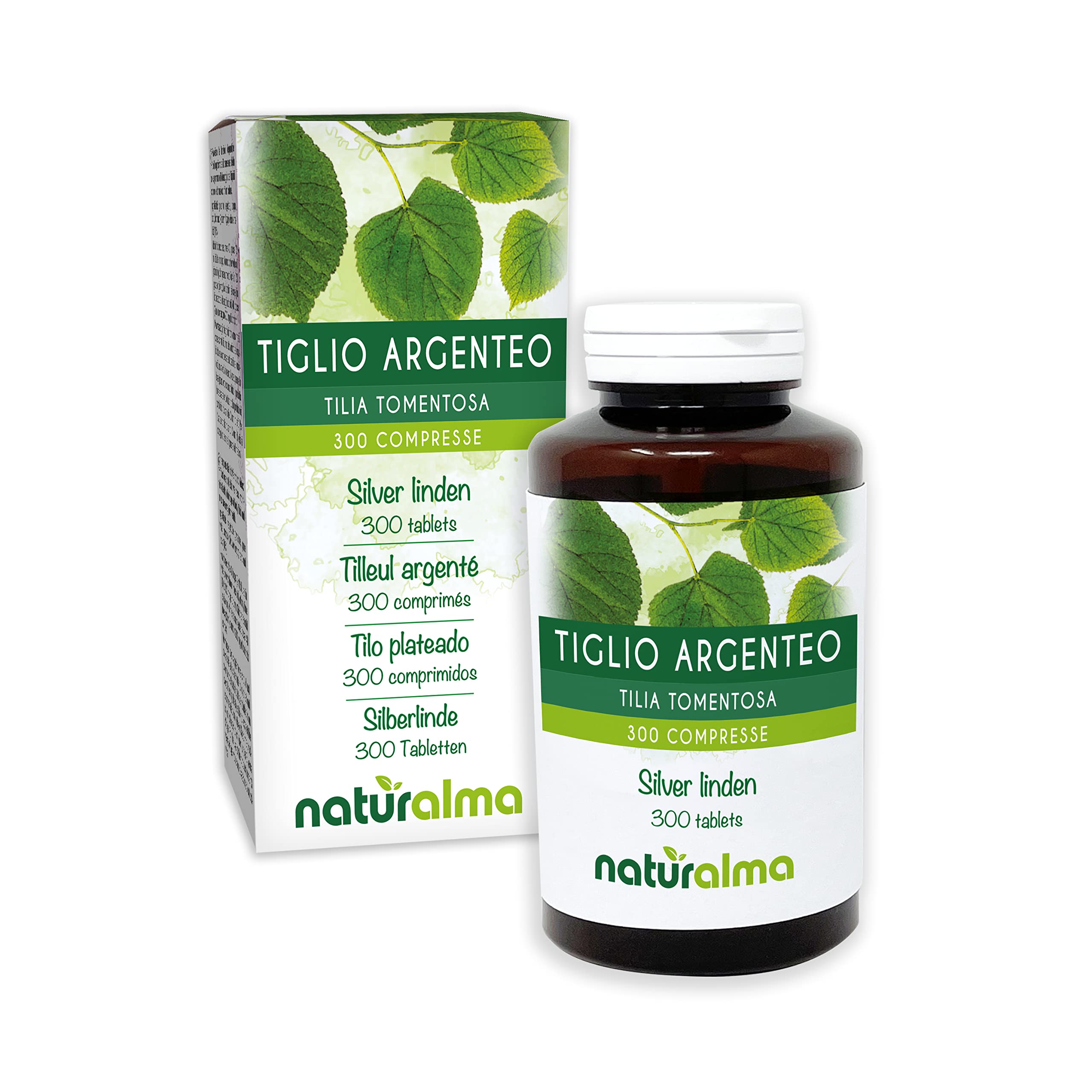 NATURALLY WITH YOU: We pay close attention to you. It's part of our philosophy. That's why, in addition to developing dietary supplements designed to meet your needs, we work on unique formulas and seek to achieve a perfect synergy of ingredients and dosages. We are at your disposal to advise and assist you in your goals, and to provide you with information on each product. Contact us!. NATURALMA – Natural habits: We respect and love nature. All our dietary supplements are vegan and free of artificial ingredients. They are free of preservatives, colors, flavors, and synthetic sweeteners. We carefully select our raw materials to guarantee maximum quality and safety. MADE IN ITALY: NATURALMA dietary supplements are produced and packaged in Italy. A NATURAL AID: Silver Linden (Tilia tomentosa) flower and bract (leaf) dietary supplement in tablets. 4 tablets contain 1200 mg of Silver Linden. Silver Linden (Tilia tomentosa) flowers and bracts (leaves) 300 TABLETS (150 g size). Produced in the form of tablets, lozenges or lozenges (no caps, capsules or softgels). 1 tablet contains 300 mg of Silver Linden.NATURELLEMENT AVEC VOUS : Nous portons une grande attention à votre égard. Cela fait partie de notre philosophie. C'est pour cela qu'en plus d'élaborer des compléments alimentaires conçus pour répondre à vos exigences, nous travaillons sur des formules uniques et cherchons à obtenir une synergie parfaite des ingrédients et des dosages. Nous nous tenons à votre disposition pour vous conseiller et vous assister dans vos objectifs, vous fournir les informations sur chaque produit. Contactez-nous !. NATURALMA – Des habitudes naturelles : Nous respectons et aimons la nature. Tous nos compléments alimentaires sont ainsi végétaliens et sans ingrédients artificiels. Ils sont sans conservateurs, colorants, arômes ni édulcorants de synthèse. Nous choisissons nos matières premières avec soin pour garantir une qualité et une sécurité maximales. MADE IN ITALY : Les compléments alimentaires NATURALMA sont produits et confectionnés en Italie. UN ALLIÉ NATUREL : complément alimentaire de Tilleul argenté (Tilia tomentosa) fleurs et bractées (feuilles) en comprimés. 4 comprimés contiennent 1200 mg de Tilleul argenté. Tilleul argenté (Tilia tomentosa) fleurs et bractées (feuilles) 300 COMPRIMÉS (format 150 g). Produit sous forme de comprimés, pastilles ou tablettes (pas d'opercules, de capsules ni de gélules souples). 1 comprimé contient 300 mg de Tilleul argenté.