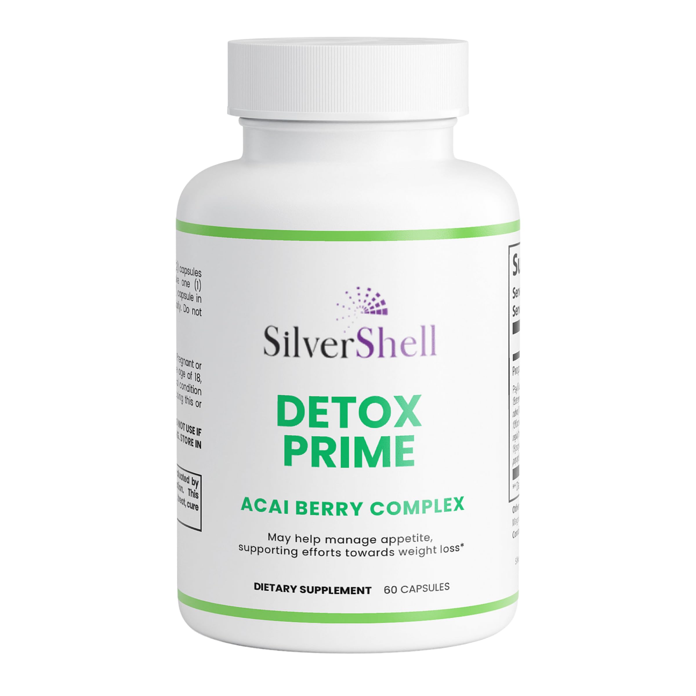 silvershell Daily Colon Cleanse - Bloating Relief with Acai Berry Extract - Aloe Ferox Psyllium Inulin Slippery Elm Bark Black Walnut Hulls - Antioxidant Cleanse for Digestive Health & Detox