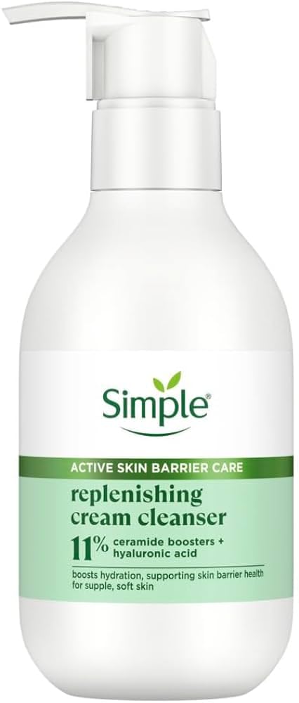 Active Skin Barrier Care Replenishing Cream Cleanser is the first product formulated with coacervation technology to help increase deposition of skin-loving goodies like ceramide boosters, hyaluronic acid, humectants & provitamin b5, to help replenish and retain hydration for supple, nourished skin. Active Skin Barrier Care Replenishing cream cleanser with 11% ceramide boosters & Hyaluronic acid boosts hydration, supporting skin barrier health for supple, soft skin. The 11% ceramide boosters penetrate and absorb into the skin which boosts the skin’s natural ceramide production, helping replenishing skin’s natural lipid barrier for instantly soft, supple and bouncy skin. The glycerin and hyaluronic acid help repair skin’s moisture barrier, for smoother, more nourished skin. Our replenishing formula goes beyond gentle cleansing by helping to restore skin-essential nutrients for hydrated, plump, and healthy-looking skin. This skin pH-Neutral and Sulfate-free blend of amino-acid derived cleanser works together to gently remove oil, pollution, and make-up without drying the skin. The skin-friendly pH is less disruptive to the acid mantle and supports the presence of good bacteria on the skin. This 100% soap-free cleanser with millions of micelles thoroughly sweeps away dirt for instantly refreshed skin. pH balanced formula for gentle cleansing without stripping the skin’s natural lipids. Contains no artificial colour or perfume. Free from 2000+ harsh chemicals. Suitable for all skin types, even sensitive skin. Available in a 150ml pack. The other products in the Active Skin Barrier Care range include Active Skin Barrier Care Smoothing Gel Cleanser 150ml, Active Skin Barrier Care Restorative Rich Cream 40g, Simple Active Skin Barrier Care Soothing Water Crème 40g. Try the Simple Active Skin Barrier Care Range - A New Generation of Cleansers and Creams that transform skin. Enhanced with ceramide boosters, to feed your skin with the nutrients and deep nourishment it needs to produce essential ceramides. A range of creams and cleansers boosted with clean and kind actives for a healthy skin barrier and visibly smoother, softer and replenished skin from the first use. Some products have topical ceramides as a solution, but it’s proven that topical ceramides do not replenish skin lipids. Ceramides must be within skin to be most efficacious; however, ceramides are very large molecules, so when applied topically, they sit on top on skin and cannot penetrate. Unlike topical ceramides, Ceramide Boosters are small enough to penetrate skin. Those with sensitive skin have 25% fewer ceramides, which can lead to a permeable skin barrier that is easily irritated by aggressors. Ceramide boosters provide the building blocks to internally restore lipids, helping to strengthen a weakened barrier. Ceramide boosters help create resilient skin from within. For replenishing hydration that lasts.Replenishing formula that goes beyond gentle cleansing by helping to restore skin-essential nutrients for hydrated, plump, and healthy-looking skin. Glycerin and hyaluronic acid help repair skin’s moisture barrier, for smoother, more nourished skin. The 11% ceramide boosters boost the skin’s natural ceramide production, helping replenishing skin’s natural lipid barrier for instantly soft, supple and bouncy skin. Formulated with coacervation technology to help increase deposition of skin-loving goodies like ceramide boosters, hyaluronic acid, provitamin b5, to help replenish and retain hydration. Boosts hydration, supporting skin barrier health for supple, soft skin.