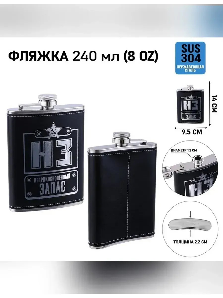 Фляжка «НЗ» — это идеальный спутник для любителей активного отдыха и путешествий. Изготовленная из высококачественной нержавеющей стали и обтянутая стильной экокожей, она сочетает в себе прочность и элегантность. Объем 240 мл позволяет удобно переносить напитки, будь то вода, чай или алкоголь. Минималистичный дизайн и черный цвет делают фляжку универсальным аксессуаром, который подойдет как для походов, так и для использования в повседневной жизни. Надежная крышка с резьбой предотвращает протекание, а компактные размеры позволяют легко помещать фляжку в карман или рюкзак. Это отличный подарок для мужчин на 23 Февраля, день рождения или любой другой праздник. Порадуйте своих близких стильным и практичным подарком, который станет незаменимым атрибутом в их жизни. Фляжка «НЗ» — это не просто аксессуар, это символ стиля и удобства, который подчеркнет индивидуальность своего владельца.