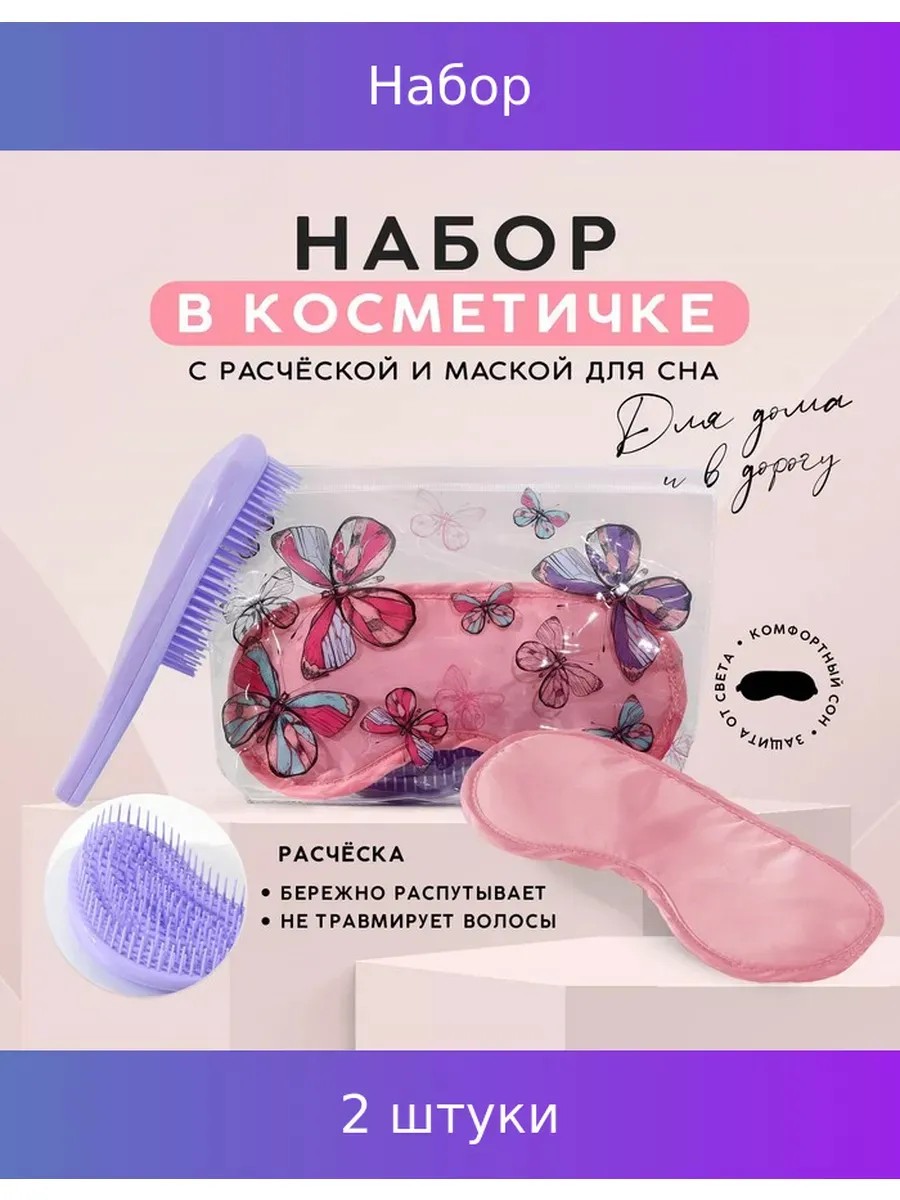 Набор «Бабочки», косметичка, маска для сна и расчёска, 2 штуки.