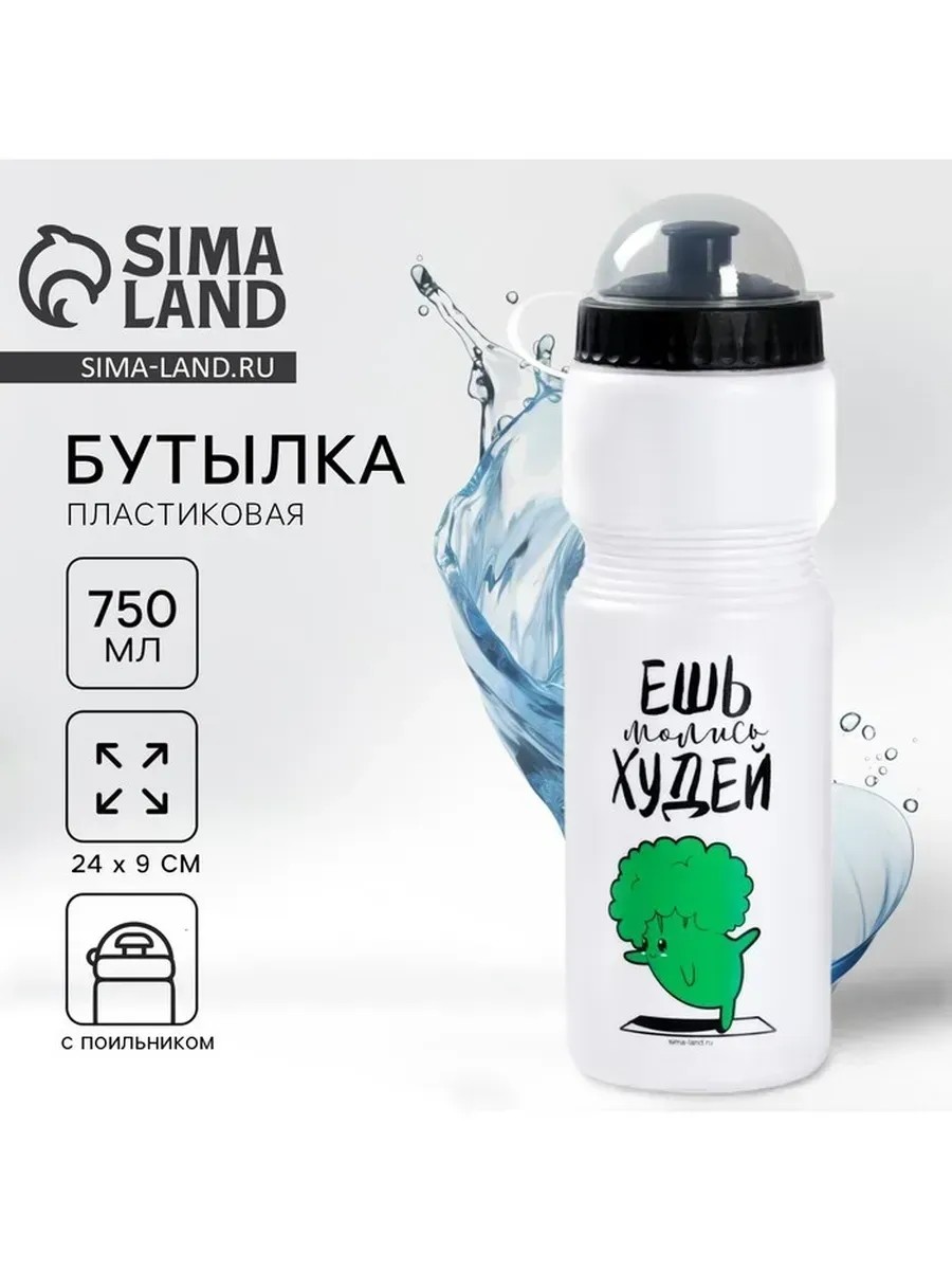 Сималенд Бутылка для воды «Ешь, молись, худей», 750 мл, белая