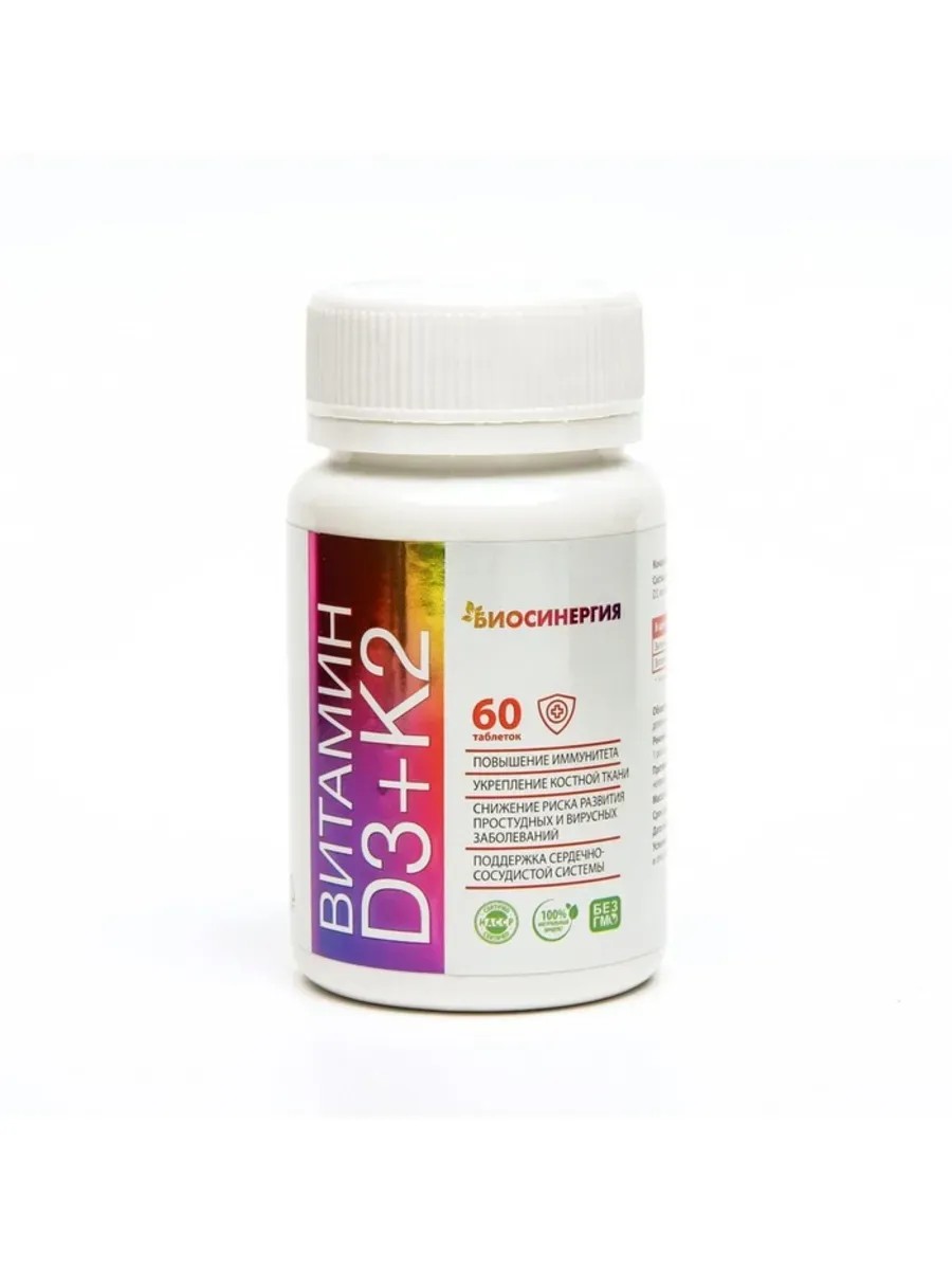 Повышение иммунитета. Укрепление костной ткани. Снижение риска развития простудных и вирусных заболеваний.Поддержка сердечно-сосудистой системы.Состав: микрокристаллическая целлюлоза, витамин D3, витамин K2, стереат магния.