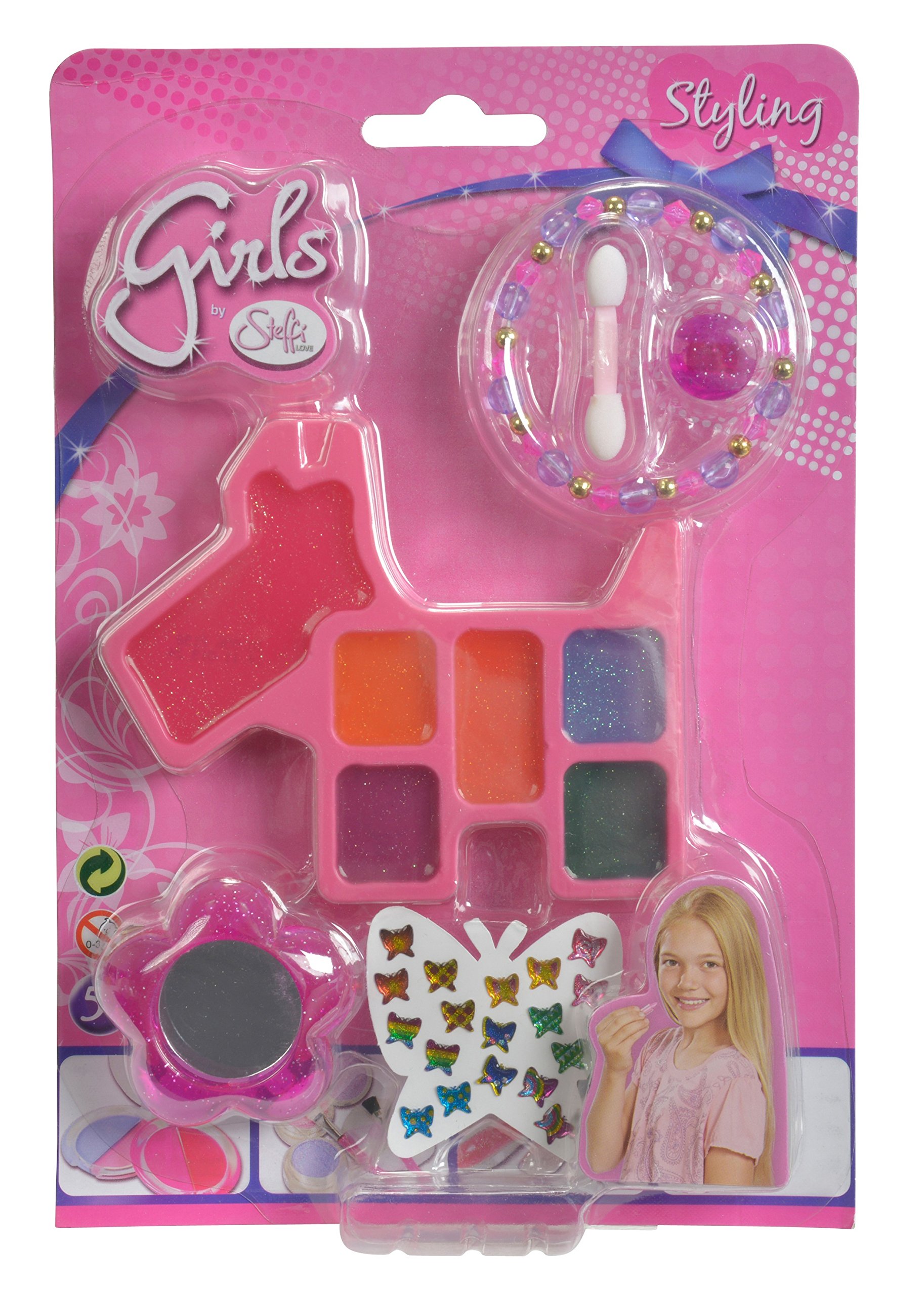 Makeup and style your way. The Steffi Love Girls lip gloss set includes a lip gloss, a mirror, a ring, a bracelet, a sticker, and an applicator. Ages 5 .