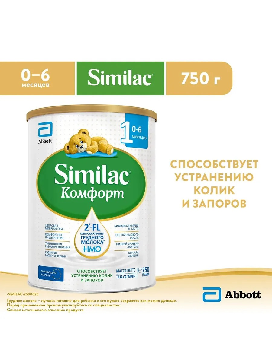 Similac Комфорт не предназначен для вскармливания детей с галактоземией, с подозрением на аллергию к белкам коровьего молока (АБКМ) или с подтвержденной АБКМ.