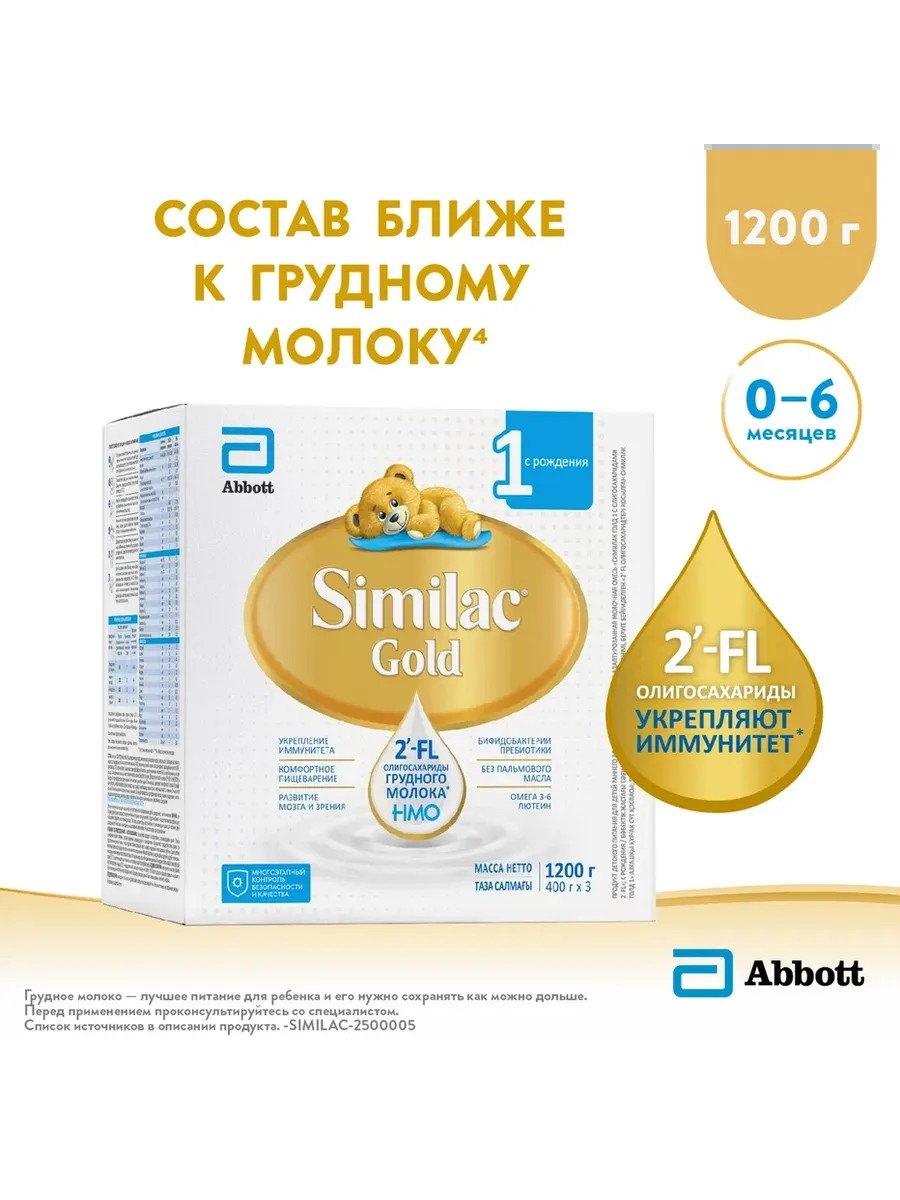 Cмесь Gold 1 с 2'-FL для иммунитета, с 0 мес, 1200 г