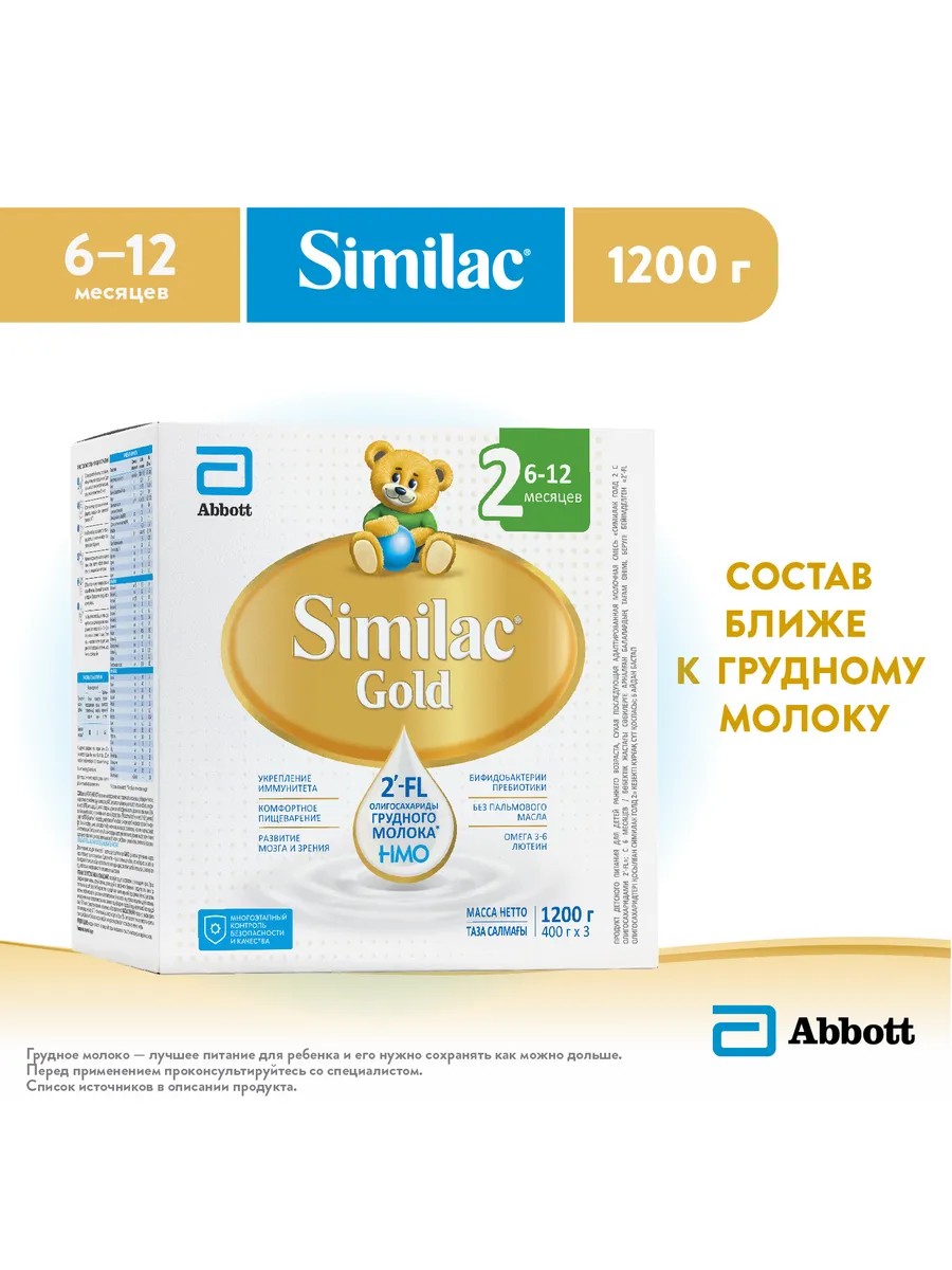 Similac Gold – детская молочная смесь для полноценного роста и развития, содержит 2'-FL олигосахариды грудного молока, которые способствуют укреплению иммунитета и защите от инфекций.