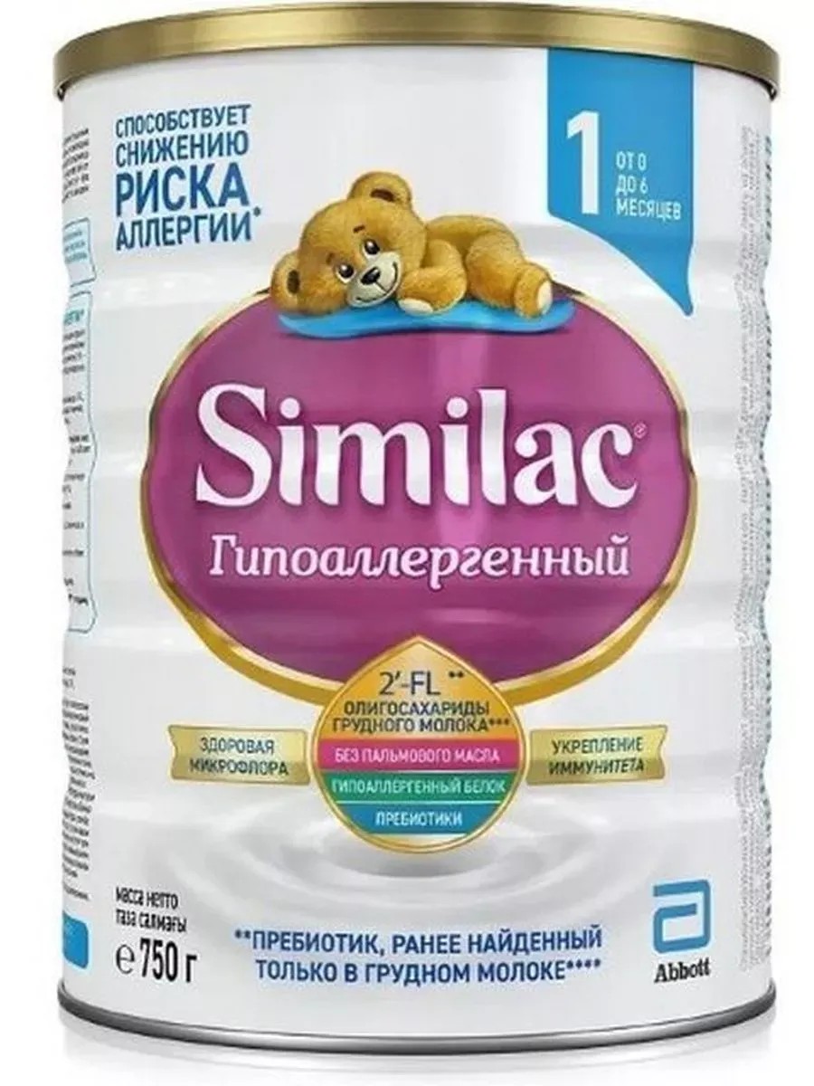 СИМИЛАК ГИПОАЛЛЕРГЕННЫЙ 1 СМЕСЬ СУХ Д/ДЕТ 750,0Смесь Симилак Гипоаллергенный 1 ( Similac Hipoallerg 1) - детская смесь на основе частично гидролизованного белка молочной сыворотки для вскармливания детей с рождения с повышенным риском аллергии.Возраст: от 0 до 6 месяцевВАЖНО: для питания детей раннего возраста предпочтительнее грудное вскармливание.Грудное молоко - лучшее питание для ребенка, его необходимо сохранять как можно дольше.Если грудное вскармливание невозможно и у ребенка повышен риск аллергии, по рекомендации врача для питания таких детей с рождения до 6 месяцев может быть использована смесь Симилак Гипоаллергенный 1.Similac Гипоаллергенный с олигосахаридами грудного молока 2'-FL для детей с риском аллергии - новое поколение гипоаллергенных смесей с олигосахаридами грудного молокаSimilac Гипоаллергенный - смесь для детей с риском аллергии с олигосахаридами грудного молока 2'-FL1 - уникальным ингредиентом, который ранее был обнаружен2 только в грудном молоке. Новый олигосахарид грудного молока 2'-FL - еще один компонент подтвержденного исследованиями комплекса Similac для комфортного пищеварения и укрепления иммунитета.-Similac Гипоаллергенный содержит олигосахариды 2'-FL, которые стимулируют рост полезных бактерий в кишечнике, защищают организм ребенка от инфекций и способствуют укреплению иммунитета.-Частично гидролизованный сывороточный белок имеет сниженную аллергенность и поэтому способствует уменьшению риска развития аллергии.-Пребиотики FOS являются пищей для полезной микрофлоры кишечника, способствуют мягкому стулу.-Нуклеотиды - строительный материал для ДНК всех клеток организма.-Отсутствие пальмового масла способствует уменьшению запоров и более высокому усвоению кальция3 .Эффективность Similac подтверждена клиническими исследованиями.ТЕПЕРЬ ЕЩЕ БЛИЖЕ К ГРУДНОМУ МОЛОКУ4.CНИЖЕНИЕ РИСКА РАЗВИТИЯ АЛЛЕРГИИПОДДЕРЖКА ИММУНИТЕТАТеперь еще ближе к грудному молоку, чем когда-либо3Similac Гипоаллергенный с олигосахаридами грудного молока 2' -