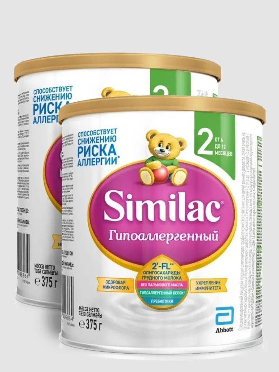 SIMILAC ГА 2 Гипоаллергенная Смесь с Олигосахаридами Грудного Молока (с 6 мес) 2 шт по 375г - еда, предназначенная для малышей 6-12 мес. на искусственном, смешанном вскармливании с риском развития аллергии. Некоторым малышам с рождения дают смесь молочную Симилак гипоаллергенный, что способствует полноценному развитию ребенка, жизни без аллергии (в составе частично гидролизованный сывороточный белок). Благодаря заменителю грудного молока Симилак, питание ребенка сбалансированное, рацион богат минералами (магний, железо и др.) и витаминами (В12 для умственного развития, Д3 для усвоения кальция и др.). Омега-3 и omega-6 (содержатся в рыбьем жире) благоприятно влияют на развитие мозга, лютеин -на здоровье глаз, а пониженное содержание лактозы способствует комфорту малыша, снижает риск возникновения колик. Для нормальной работы кишечника детское питание Симилак с бифидобактериями. Продукт без глютена, пальмового масла, использованы растительные масла: кокосовое, подсолнечное, соевое. Выпускается не в мягкой упаковке в удобной баночке.