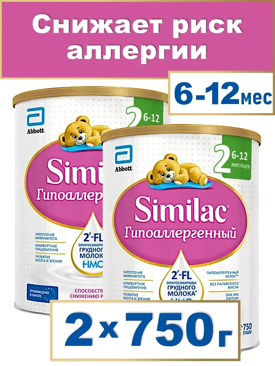 Смесь Симилак Гипоаллергенная 2, 6-12мес, 2х750г