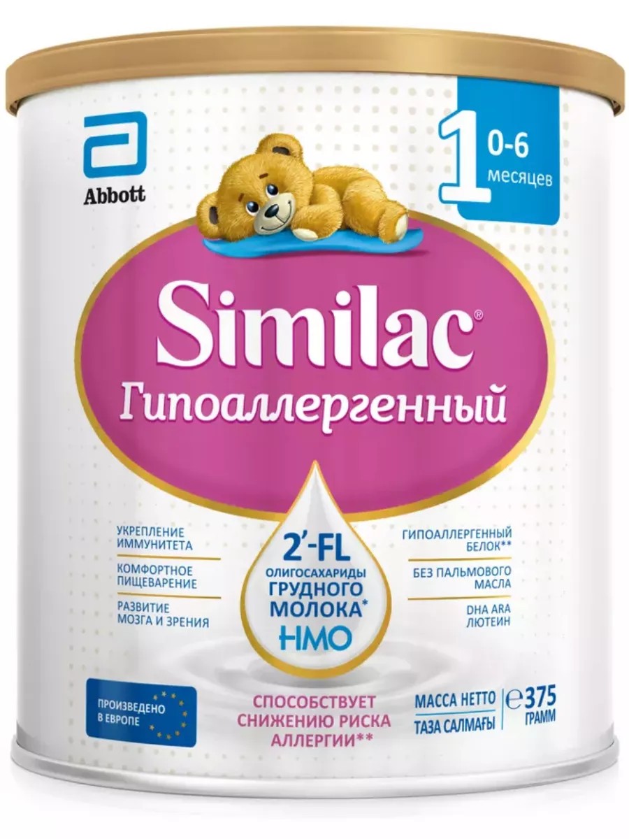 SIMILAC ГА 1 Гипоаллергенная Смесь с Олигосахаридами Грудного Молока с рождения, 2 шт по 375г на основе частично гидролизованного белка молочной сыворотки для вскармливания детей с рождения до 6 месяцев с повышенным риском аллергии. Смесь вызывает меньше аллергии благодаря частично гидролизованному сывороточному белку. Нуклеотиды и пребиотики способствуют поддержке иммунитета. Уменьшить проблемы с пищеварением помогут отсутствие пальмового масла, что способствует формированию мягкого стула.