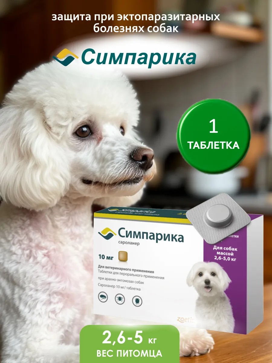 Симпарика - инновационный препарат для защиты домашних животных от клещей, блох и других паразитов. Этот ветеринарный препарат представлен в форме таблеток и предназначен для применения у собак разных пород и возрастов, обладает широким спектром действия и эффективно уничтожает клещей (анти клещ), блох (обработка от блох) и других паразитов, обеспечивая длительную защиту вашего питомца.