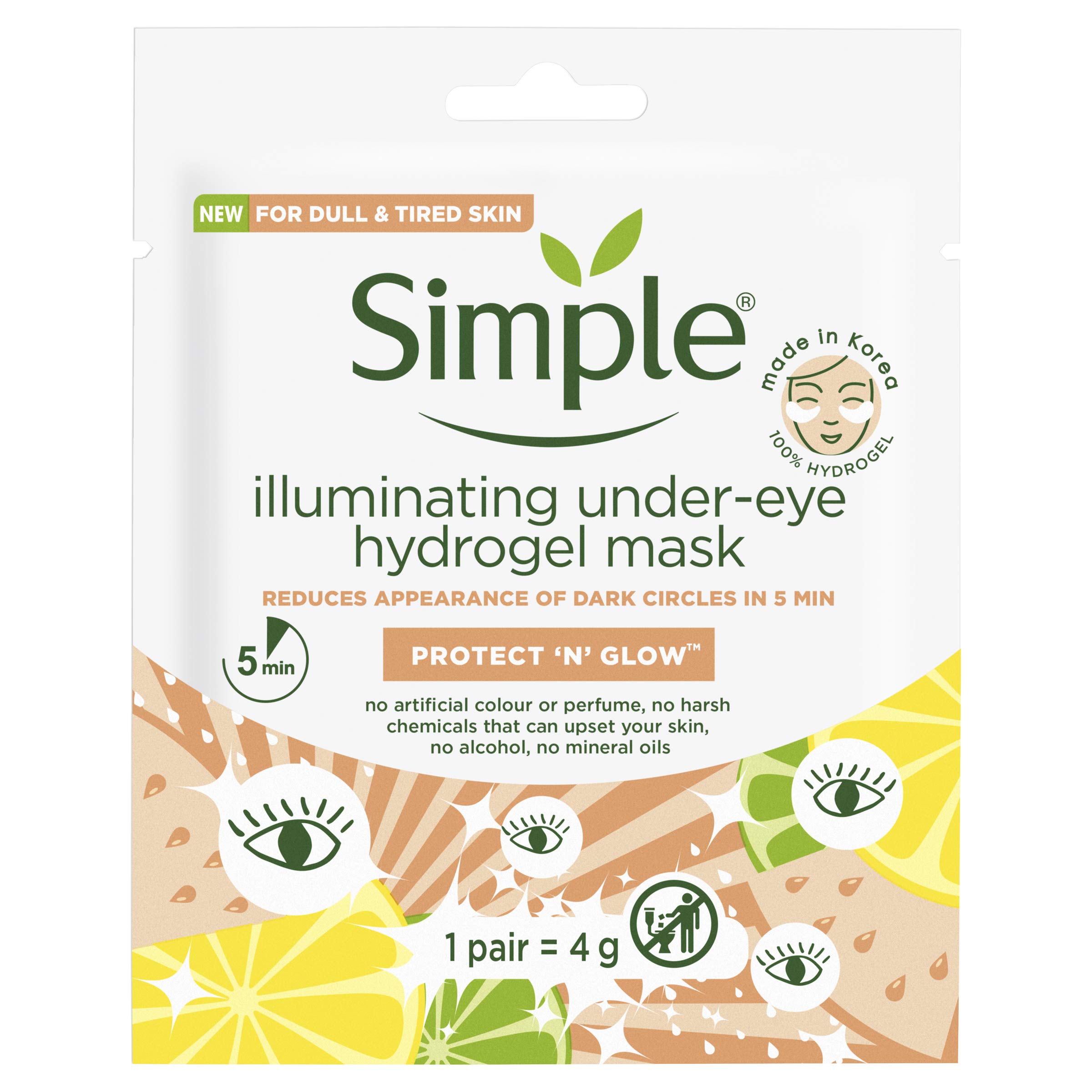 Time to glow! Formulated with 100 natural hydrogel technology, Simple kind to skin brightening under eye hydrogel mask reduces the appearance of dark circles and fine lines. Say hello to skin that looks refreshed and feels radiant. This premium natural under-eye mask is made in Korea, where the sheet masks skincare rituals originates and uses naturally derived fruit enzymes. Achieve visibly smoother skin with a naturally healthy-looking glow, The kind way. The under-eye gel mask contours to fit the under-eye shape, allowing your skin to absorb the hydrating goodness effectively - and without the hassle. This Simple Eye mask from the sensitive skin experts contains no chemicals that can upset your skin, No alcohol, no added parabens, No mineral oils and only non-animal derived ingredients. INGREDIENTS Aqua, Glycerin, Dipropylene Glycol, Chondrus Crispus Powder, Adenosine, Butylene Glycol, Cellulose Gum, Ceratonia Siliqua Gum, Chlorella Vulgaris Extract, Chlorphenesin, Citric Acid, Dextrin, Disodium EDTA, Ethyl Hexanediol, Glucomannan, Niacinamide, Phenoxyethanol, Potassium Chloride, Saccharide Isomerate, Sodium Citrate, Tremella Fuciformis Extract, Xanthan Gum.
