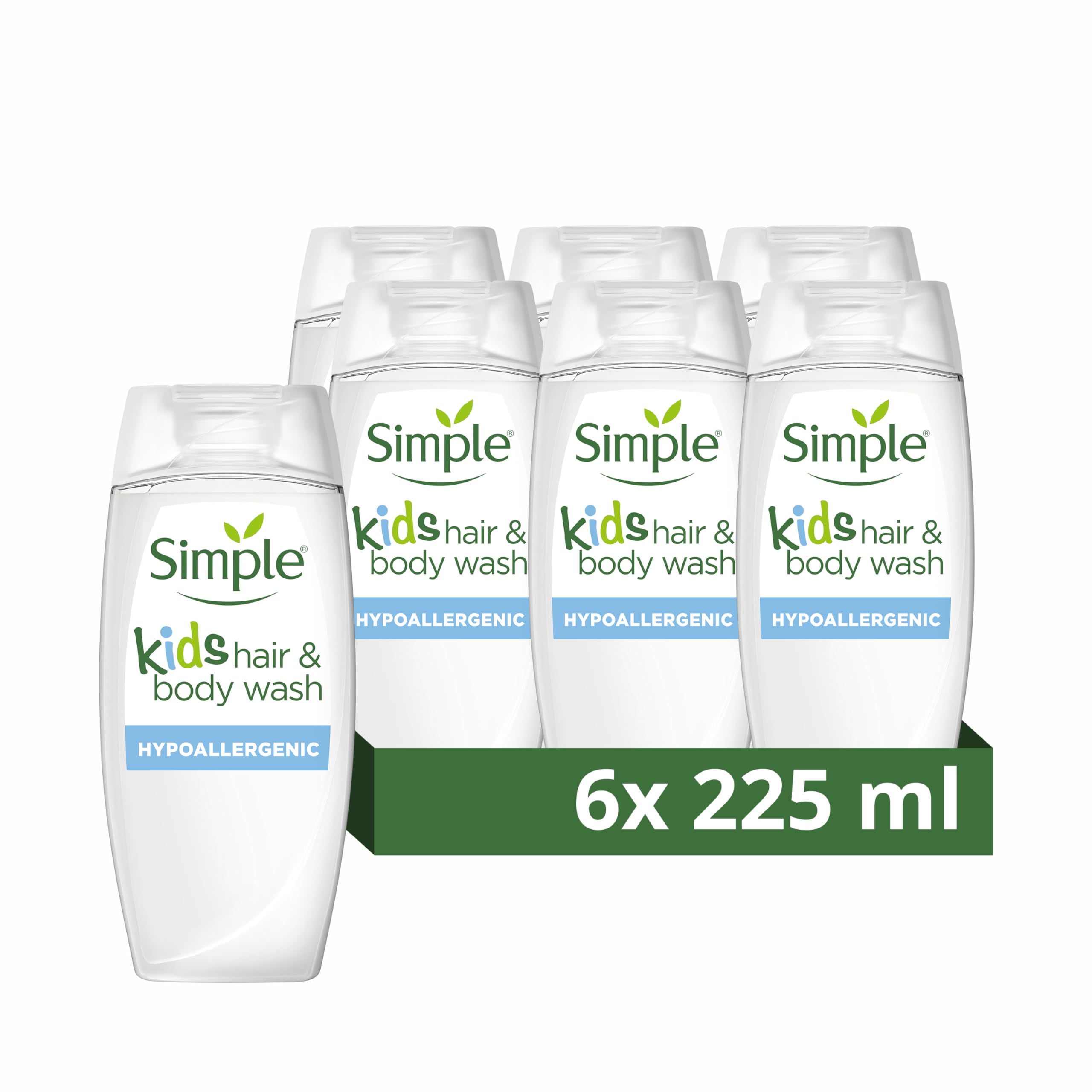 Simple Kind to Skin Kids Hypoallergenic Hair Shampoo Body Wash will make your kids jump at the opportunity to have a bath or take a shower. Simple has come up with a gentle formula that will moisturise your kids' skin and leave them feeling refreshed and smelling great all day. This gentle body wash and kids shampoo is hypoallergenic, dermatologically tested and made with simple ingredients: there are no artificial perfumes or colours, no harsh chemicals, no soap, no parabens, and no animal-derived ingredients. What we do add are skin loving ingredients like moisturisers, natural lavender and chamomile oils, as well as pro-vitamin B5, and glycerin. This gives you the best moisturising hair and body wash for kids. We take great care in making sure that we protect your childrens' sensitive skin and Simple Kind to Skin Hypoallergenic Hair Body Wash is great for children and adults alike with all different types of skin. With this body wash and kids hair product, you can be sure that hair and skin of your little ones will be healthy, soft, and clean and that your kids will want to use it. The 225 ml bottle is big enough to last a long time but not so big as to be cumbersome in little hands, and you get a 2 in 1 skin care and hair care product. Simple is certified Cruelty-Free by PETA – we don't test on animals anywhere in the world. INGREDIENTS Aqua, Sodium Laureth Sulfate, Glycerin, Cocamidopropyl Betaine, Sodium Chloride, PEG-80 Sorbitan Laurate, Anthemis Nobilis Flower Oil, Benzoic Acid, Citric Acid, Coco-glucoside, Disodium Cocoamphodiacetate, Lavandula Angustifolia Oil, Panthenol, Pantolactone, Sodium Benzoate, Sodium Cocoamphodiacetate, Styrene Acrylates Copolymer, Tetrasodium EDTASimple hypoallergenic hair shampoo and body wash is certified Cruelty-Free by PETA – we don't test on animals anywhere in the world. This body wash and kids shampoo is free from artificial perfumes, colours, and harsh chemicals that can upset your skin. Perfect for your child's sensitive skin, this body wash and shampoo for kids was designed by sensitive skin experts and is loved by all skin types. This 2 in 1 hypoallergenic shower gel and hair care product for kids has a gentle and dermatologically tested formula. This body wash and hair shampoo for kids is enriched with moisturisers, natural lavender and chamomile oils, pro-vitamin B5, and glycerin. Simple Kind to Skin Kids Hypoallergenic Hair Shampoo Body Wash gently yet effectively cleanses and soothes your kid's hair and body.