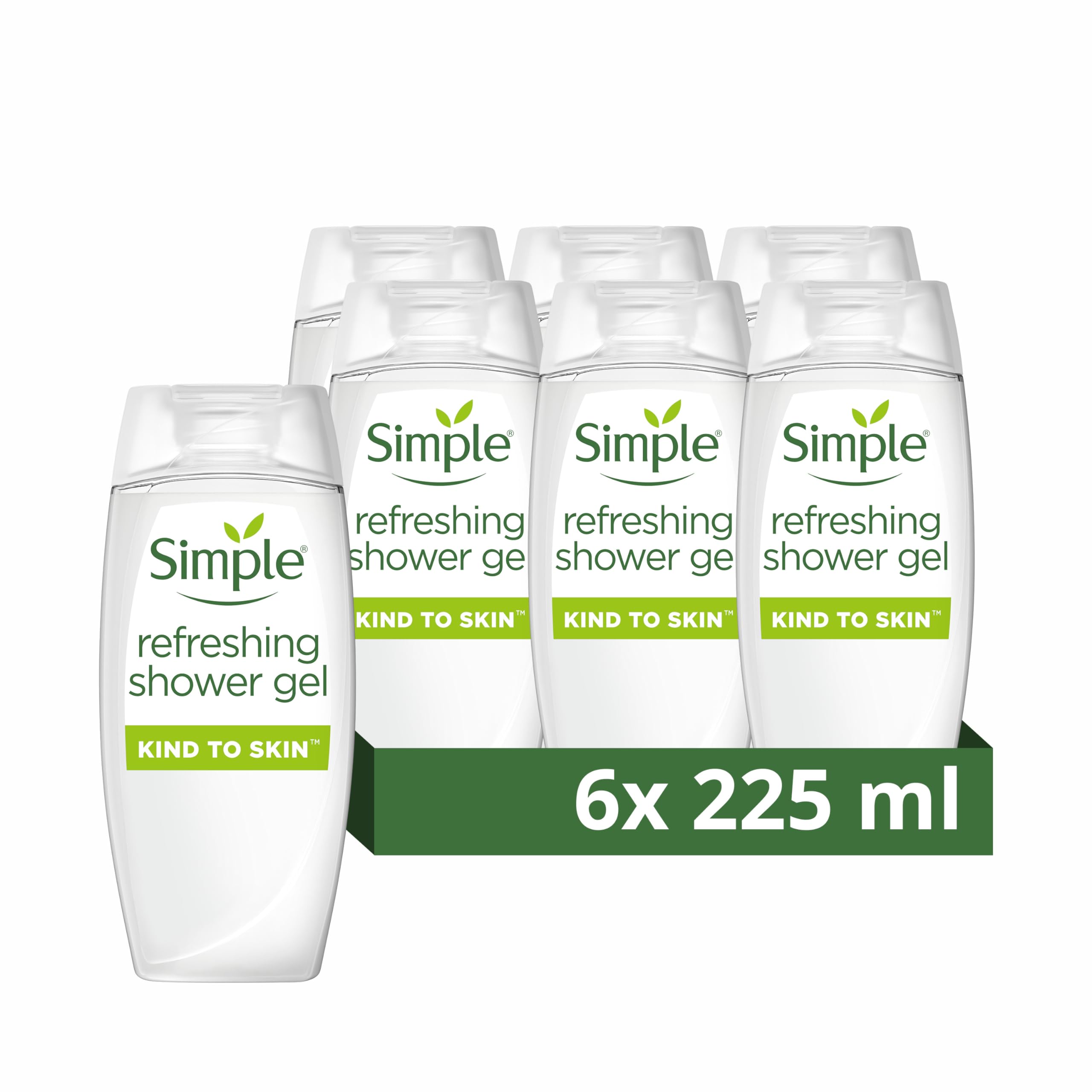 Smile, it's simple. Simple has been the expert in sensitive skin since launching the first perfume and colour-free soap in 1960. We’ve stayed committed to our original philosophy of creating skincare and skin cleansing products suitable for all skin types. From this, we have learnt that if something is as delicate and precious as skin, it deserves only the kindest care. Simple says no to artificial perfumes, colours, and harsh chemicals that can upset your skin. Instead, we use only the purest possible, skin-loving ingredients, so you can trust all our products to be kind to sensitive skin. Choose Simple Kind to Skin Refreshing Shower Gel to clean and refresh your skin. A refreshing shower gel for dry skin with cucumber extracts and pro-vitamin B5, but no artificial perfume or colour, and no harsh chemicals that can upset your skin. Simple's luxury shower gel is a perfect blend of ingredients to awaken and revitalise your skin. This body wash has been dermatologically tested and approved, and therefore it is an excellent shower gel for dry or sensitive skin. For best results, squeeze the Simple Kind to Skin natural shower gel onto a sponge or on your hands. Next, gently massage the shower gel over your skin to form a rich lather. Then, simply rinse thoroughly and follow with a face wash. When using our Refreshing Shower Gel, avoid contact with eyes. INGREDIENTS Aqua, Sodium Laureth Sulfate, Sodium Chloride, Cocamidopropyl Betaine, Glycerin, Sodium Benzoate, Citric Acid, Sodium Lactate, Polyquaternium-7, Panthenol, Tetrasodium EDTA, Menthyl Lactate, Dipropylene Glycol, Propanediol, Cucumis Sativus Fruit Extract. SAFETY WARNING sytay away from eye contact See moreSqueeze our sensitive body wash onto a sponge or your hands. Gently massage over your skin to form a rich lather. Rinse thoroughly. Avoid contact with eyes. This shower gel for dry skin is dermatologically tested and approved. This body wash contains no artificial perfume, colour, or harsh chemicals that can upset your skin. Simple Refreshing Shower Gel is enriched with cucumber extracts and pro-vitamin B5. Simple's sensitive skin experts created a shower gel that is perfect for even the most sensitive skin. Simple Kind to Skin Refreshing Shower Gel is the perfect blend of ingredients to clean and energise your skin.