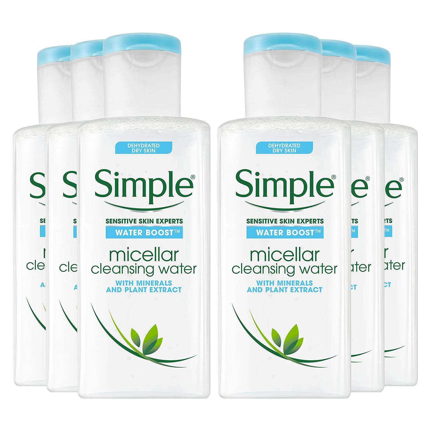 Simple Water Boost Micellar Cleansing Water 6-Pack (200ml Bottles) Simple Water Boost Micellar Cleansing Water: Our simple micellar cleansing water is infused with skin-friendly minerals and botanical extracts. This simple cleanser is specially developed for dry, dehydrated, or sensitive skin. It gently and effectively cleanses and removes impurities and makeup from your face, while instantly soothing and rehydrating thirsty skin. Skin is refreshed, supple, and instantly hydrated without irritation. No need to rinse afterward. Cleansing is an important part of a healthy skincare routine. Features: Simple Water Boost Micellar Cleansing Water is a skin cleanser that gently yet effectively cleanses your skin, removing both dirt and makeup. This facial cleanser instantly hydrates, leaving skin refreshed and supple—the perfect micellar water. This micellar makeup remover has a lightweight formula with no sticky or oily residue. Micellar technology formula infused with skin-friendly minerals and a plant extract for effective yet instantly hydrating cleansing. Ingredients: Water (Aqua), Hexylene Glycol, Glycerin, PEG-6 Caprylic Capric Glycerides, Phenoxyethanol, Cetrimonium Chloride, Terasodium EDTA, Propylene Glycol, Citric Acid, Cetylpyridinium Chloride, Sodium Chloride, Potassium Chloride, Sodium Isomerate, Sodium Benzoate, Sodium Citrate, Lactic Acid. Acid Directions for use: Apply a generous amount of cleansing water to a cotton pad. Wipe the cotton pad around your face there's no need to rub your skin. Why not use both the front and back of a cotton pad? The environment will thank you. Gently wipe around closed eyes. No need to rinse afterward. Avoid contact with eyes. In case of contact with eyes, rinse thoroughly with water. Contents: 6 x 200ml bottles of Simple Water Boost Micellar Cleansing WaterMicellar technology formula infused with skin-friendly minerals and a plant extract for effective yet instant cleansing. Simple Water Boost Micellar Cleansing Water is a skin cleanser that gently but effectively cleanses your skin, removing both dirt and makeup. This facial cleanser instantly hydrates, leaving skin feeling fresh and supple—the perfect micellar water. The micellar cleansing water is vegan, as well as free of color, fragrance, and harsh chemicals that could irritate your skin. Have you noticed this bottle is a little grayish? That's because it's made from 100 recycled plastic. Simple Micellar Water has millions of micelles that lift away dirt and makeup while leaving your skin hydrated for up to 4 hours, with no residue. Now in our limited-edition Little Mix pack, celebrating the choice of kindness. Simply believe that clean beauty should be accessible to everyone and we are working to make all our products more sustainable, more ethical, more natural and always free of harsh chemicals.Simple Sensitive Skin Experts Water Boost Lot de 6 flacons d'eau nettoyante micellaire avec minéraux et extraits de plantes 200 mlDESCRIPTION DU PRODUIT Simple Water Boost Lot de 6 flacons d'eau nettoyante micellaire 200 ml Eau nettoyante micellaire Simple Water Boost : notre eau nettoyante micellaire simple, infusée avec des minéraux doux pour la peau et un extrait de plantes. Ce nettoyant simple est spécialement développé pour les peaux sèches, déshydratées ou sensibles, il nettoie et élimine en douceur et efficacement les impuretés et le maquillage de votre visage, tout en apaisant et réhydratant instantanément la peau assoiffée. La peau est rafraîchie, souple et instantanément hydratée sans irritation. Pas besoin de rincer après. Le nettoyage est une partie importante d'un régime de soins de la peau sain. Caractéristiques : L'eau nettoyante micellaire Simple Water Boost est un nettoyant pour la peau qui nettoie doucement mais efficacement votre peau, éliminant à la fois la saleté et le maquillage Ce nettoyant pour le visage hydrate instantanément, laissant la peau rafraîchie et souple - l'eau micellaire parfaite Ce démaquillant micellaire a une formule légère, sans résidus collants ou gras Formule de technologie micellaire infusée avec des minéraux doux pour la peau et un extrait de plante pour un nettoyage efficace mais hydratant instantanément Ingrédients : eau (Aqua), hexylene glycol, glycérine, PEG-6 caprylic capric glycérides, phénoxyéthanol, chlorure de cétrimonium, EDTA térasodium, propylène glycol citrique, cetylpyridinium chloride, chlorure de sodium, chlorure de potassium, issomérate de saccharide, benzoate de sodium, sodium, sodium, sodium, sodium, sodium, sodium. Citrate, lactique. Acide Mode d'emploi : Appliquez une quantité généreuse d'eau nettoyante sur un coton. Essuyez le coton autour du visage, pas besoin de frotter la peau. Pourquoi ne pas utiliser le dos et le devant d'un coton ? L'environnement en sera reconnaissant. Essuyez doucement autour des yeux fermés. Pas besoin de rincer après. Évitez de pénétrer dans les yeux. En cas de contact avec les yeux, rincer abondamment à l'eau. Contenu : 6 flacons d'eau nettoyante micellaire Simple Water Boost de 200 mlFormule de technologie micellaire infusée avec des minéraux doux pour la peau et un extrait de plante pour un nettoyage efficace mais instantanément. Simple L'eau nettoyante micellaire Water Boost est un nettoyant pour la peau qui nettoie doucement mais efficacement votre peau, éliminant à la fois la saleté et le maquillage, ce nettoyant pour le visage hydrate instantanément, laissant la peau fraîche et souple – l'eau micellaire parfaite. L'eau nettoyante micellaire est végétalienne, ainsi que sans couleur, parfum et produits chimiques agressifs qui pourraient gêner votre peau. Avez-vous remarqué que cette bouteille est un peu grisâtre? C'est parce qu'il est fabriqué à partir de plastique 100 recyclé. Simple L'eau micellaire a des millions de micelles qui soulèvent la saleté et le maquillage tout en laissant votre peau hydratée jusqu'à 4 heures, san