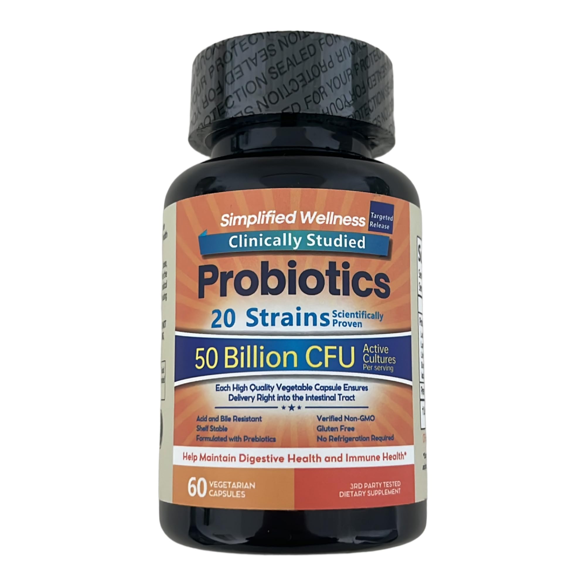 Simplified Wellness Clinically Studied Probiotics 50 Billion CFU Active Cultures Strain Scientifically Proven 60 Vegetable Capsules