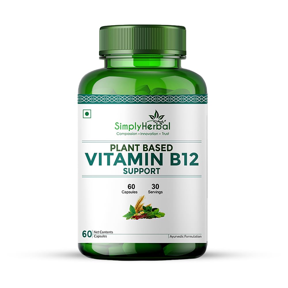 Simply Herbal Plant-Based Vitamin B12 Capsules offer a supportive addition to your daily health regimen. Sourced from quality plant ingredients, these 60 capsules are formulated to support the absorption of B12, an important nutrient for cellular energy metabolism and overall vitality. Crafted with natural ingredients and free from artificial additives, these easy-to-swallow capsules are designed to promote a holistic approach to wellness and support a balanced lifestyle for both men and women.